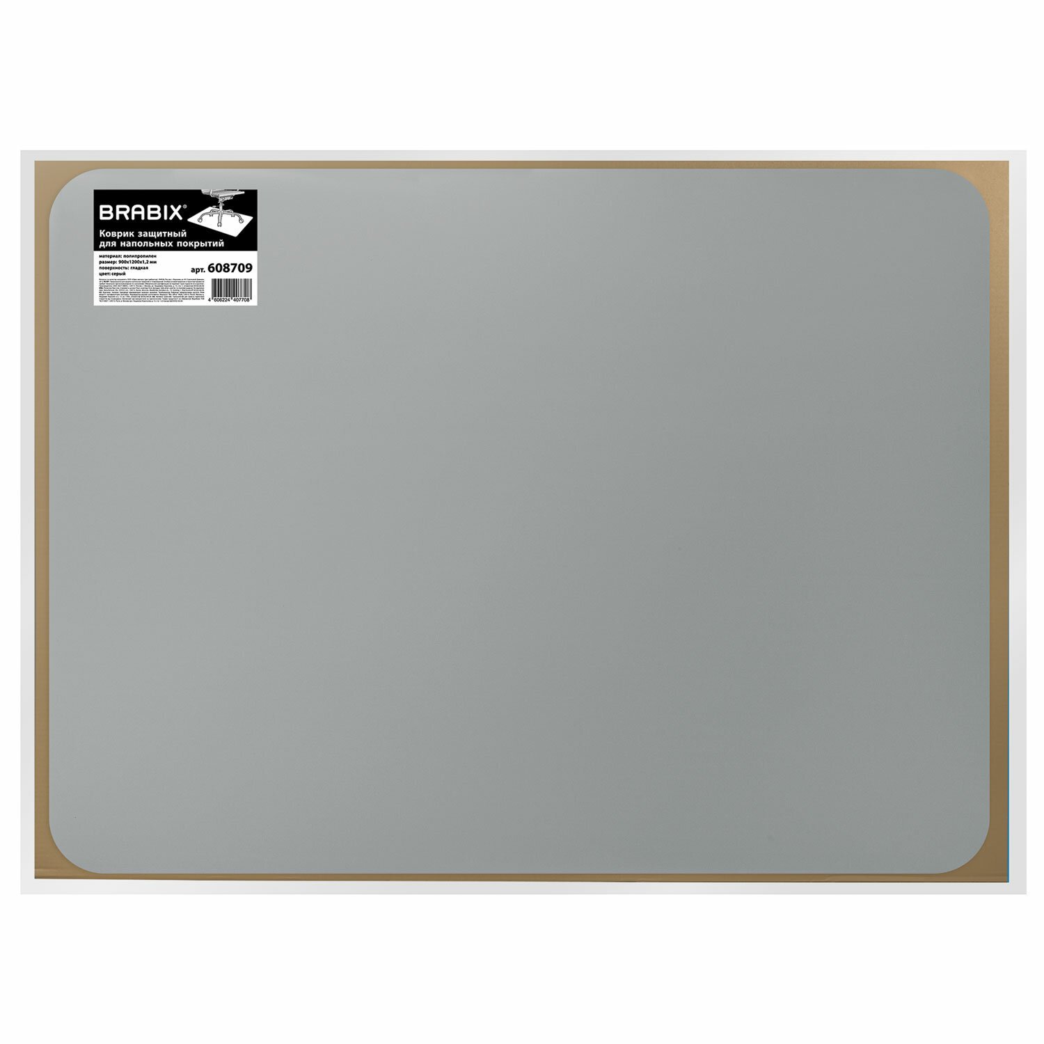 Коврик защитный напольный BRABIX, полипропилен, 90х120 см, серый, толщина 1,2 мм, 608709, 1212091205