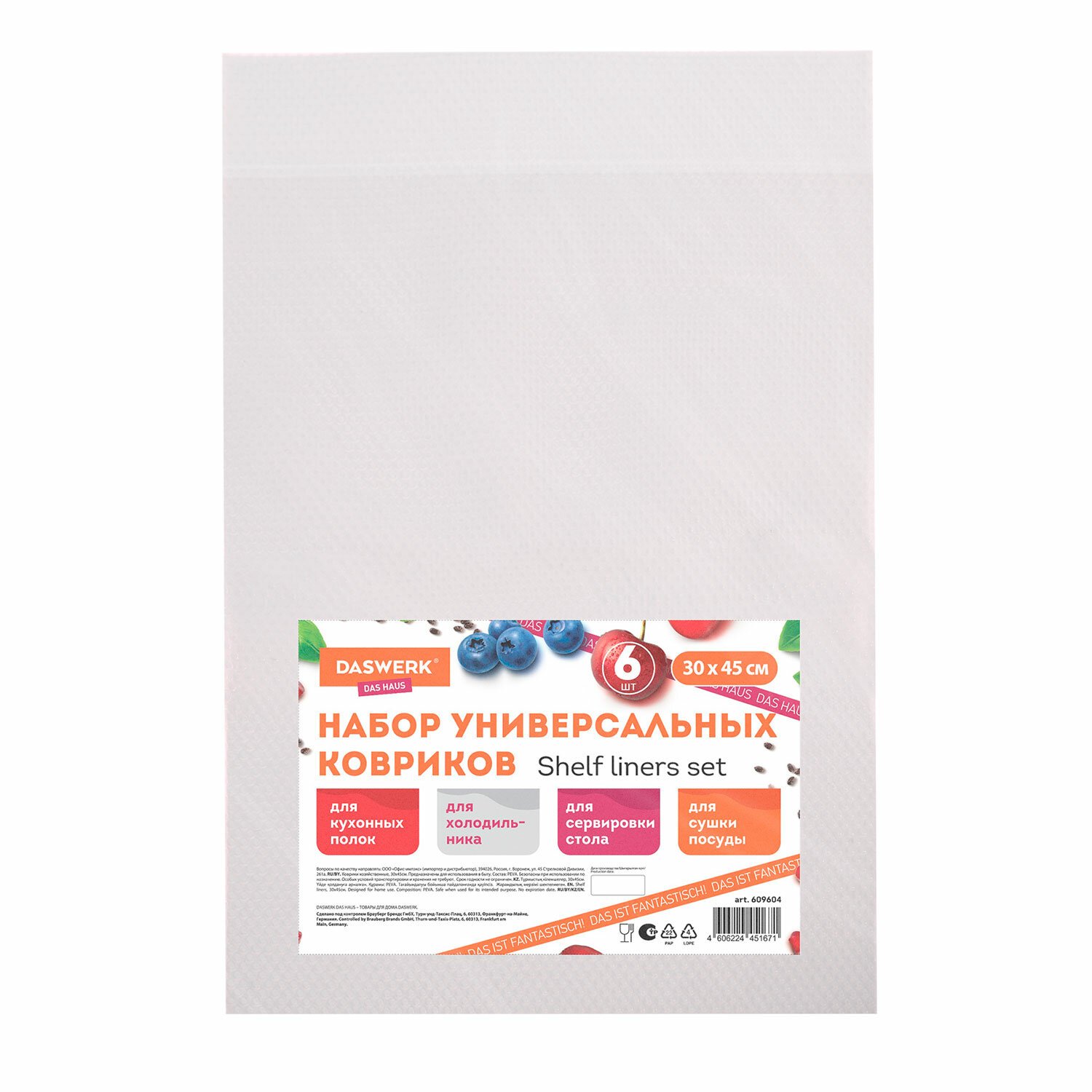 Набор универсальных ковриков DASWERK обеспечит надежную защиту поверхностей от влаги, жира, пятен, а также от царапин, сколов и других механических повреждений. Коврики DASWERK станут незаменимым аксессуаром в доме и на даче!