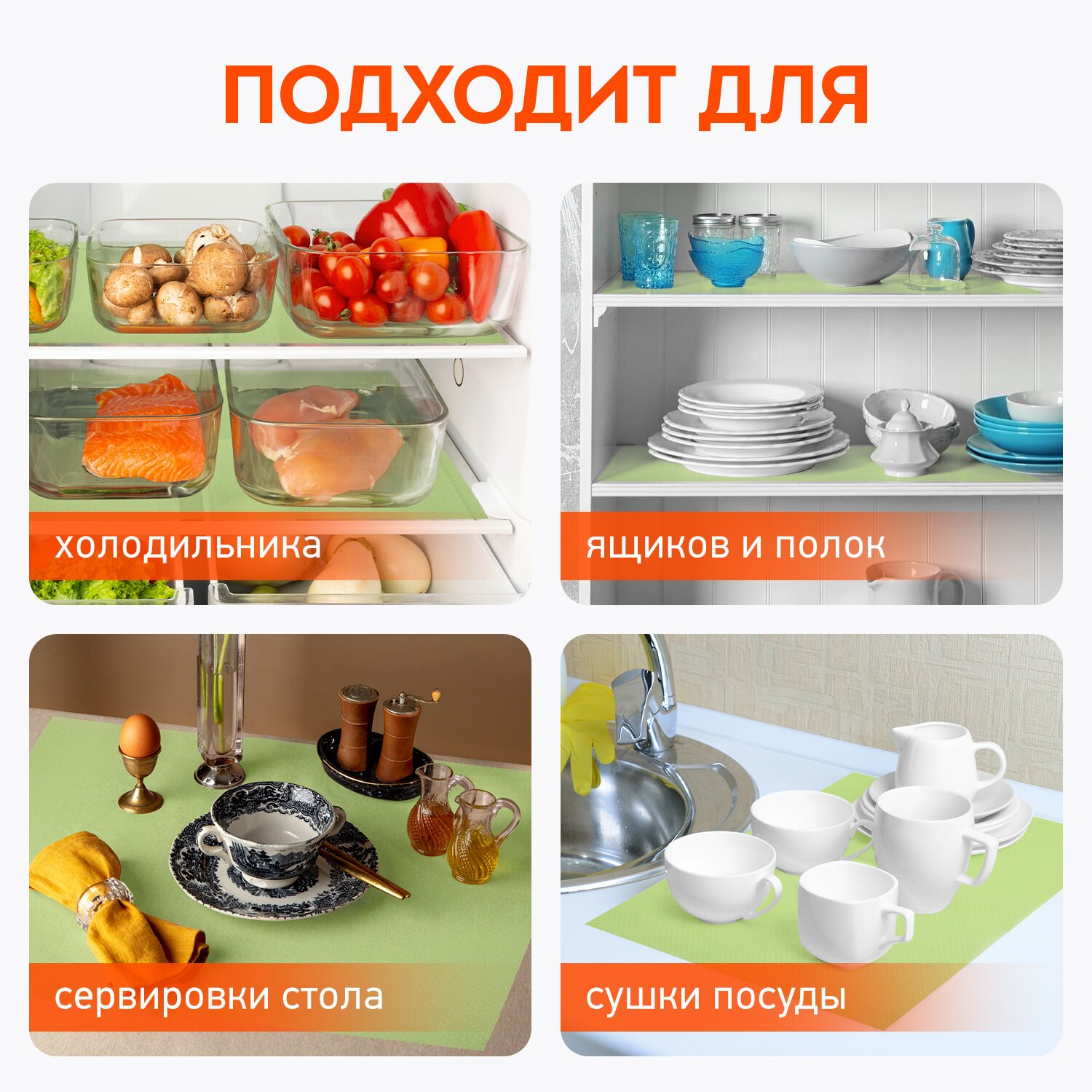 Главное достоинство ковриков – их многофункциональность: вы сможете использовать их для полок холодильника, выдвижных ящиков, эстетичной сервировки стола в качестве плейсматов, сушки посуды и полок для обуви. Коврики можно постелить на подоконник под горшки с комнатными растениями или обустроить зону кормления домашних питомцев, что значительно упростит уборку.