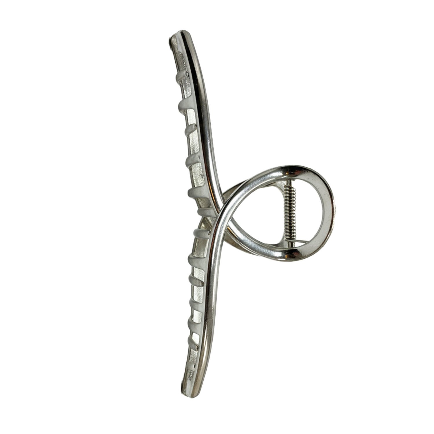 Серебристый краб из металла с глянцевым покрытием – идеальный аксессуар для густых волос. Удобный размер (13 см) подходит для локонов любой длины, а эргономичная пружина обеспечит надежную фиксацию без дискомфорта.
