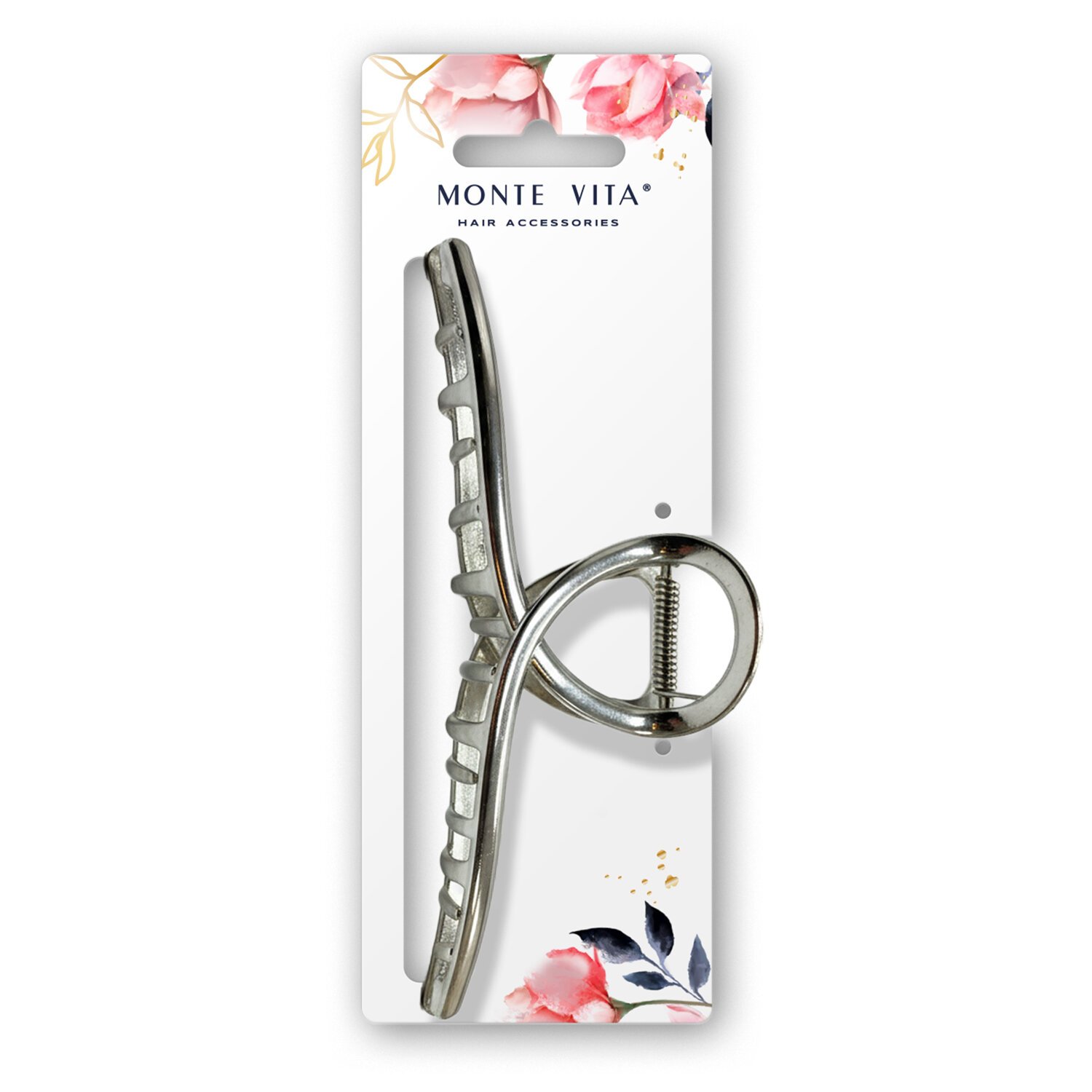 Краб для волос, 13 см, петелька, серебристый, MONTE VITA (МОНТЕ ВИТА), 458820