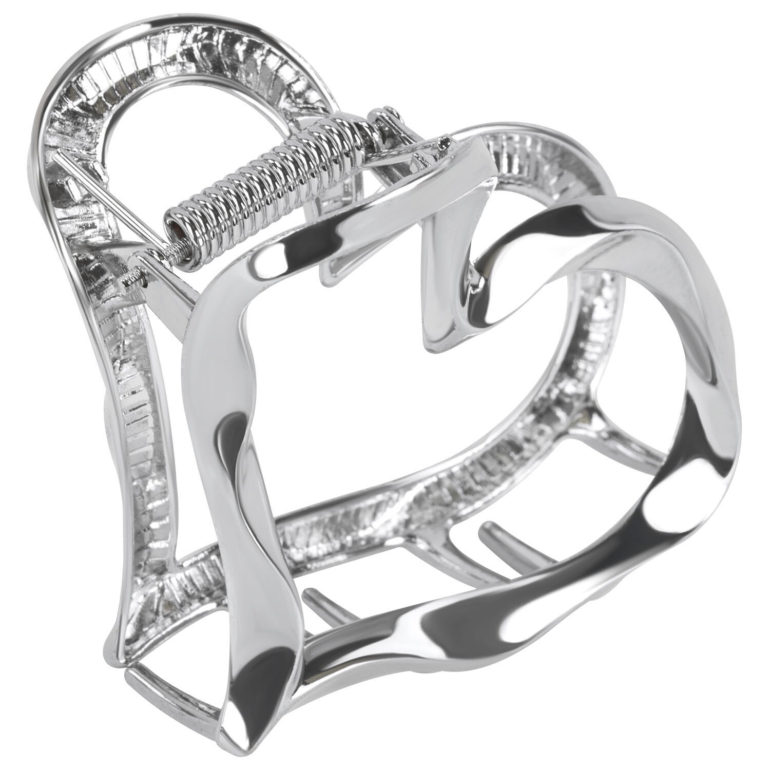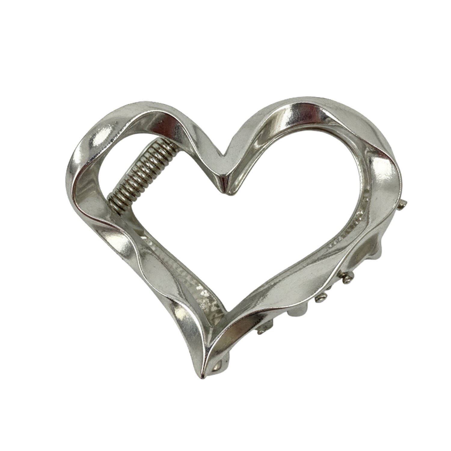 Серебристый краб из металла с глянцевым покрытием в форме сердца - идеальный аксессуар для повседневных образов. Небольшой размер (6 см) позволяет использовать его повседневных причесок или вечерних укладок. Усиленная пружина справится даже с густыми прядями и гарантирует долговечность.