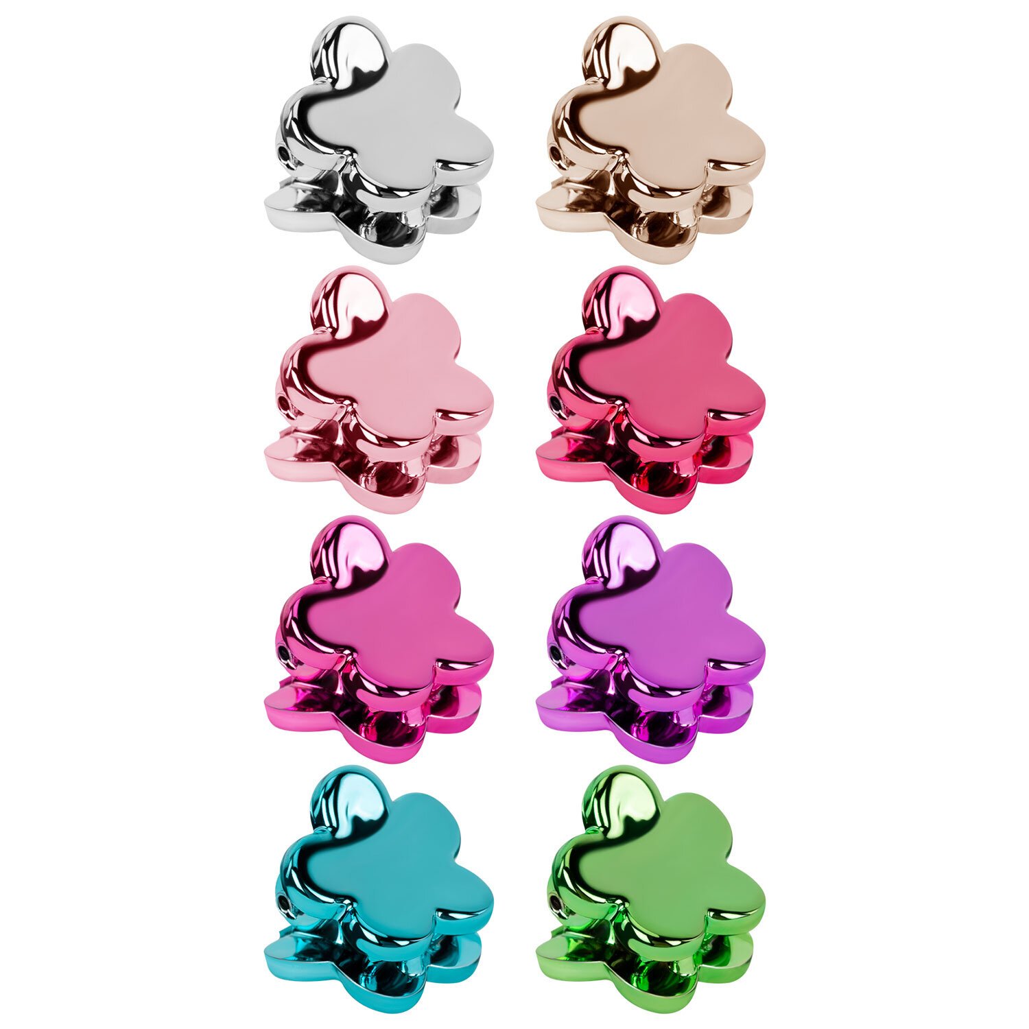 8 зеркальных крабов с металлическим блеском — аксессуар для смелых образов. Миниатюрный размер (1 см) позволяет использовать их как декор для пучков или тонких прядей.