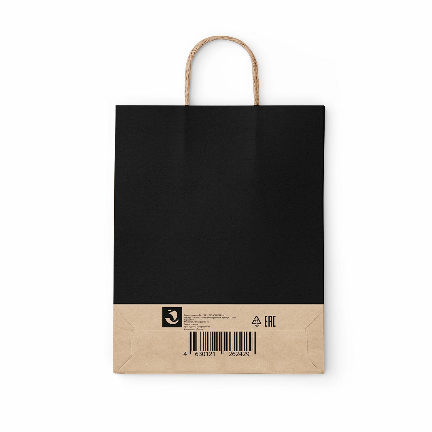 Крафт пакет бумажный Black 26х15х35см с кручеными ручками, плотность 80 гр/м2, моноцв, 112429