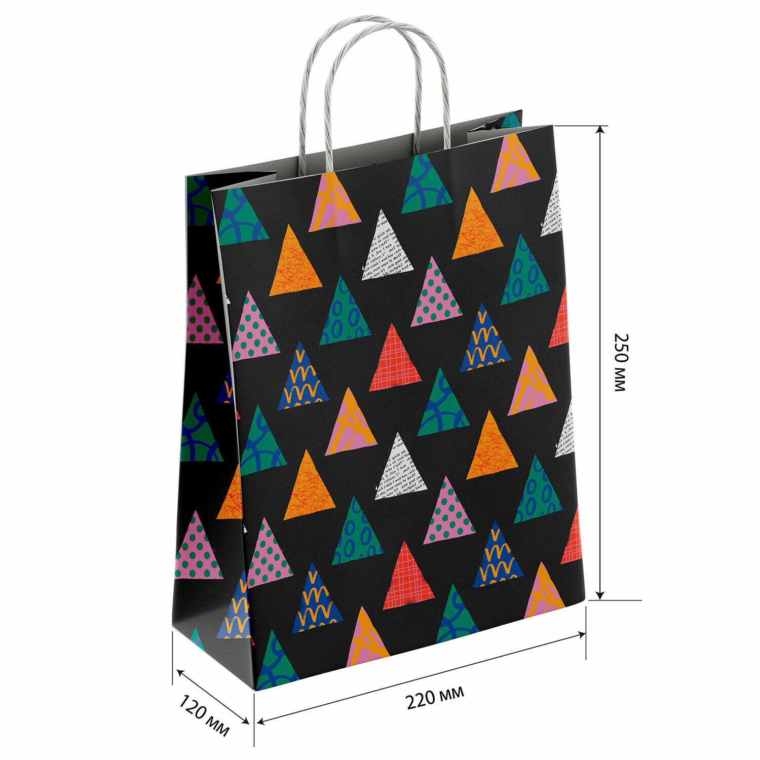 Крафт пакет бумажный Геометрия 22х12х25см с кручеными ручками, плотность 100 гр/м2, б, 112290