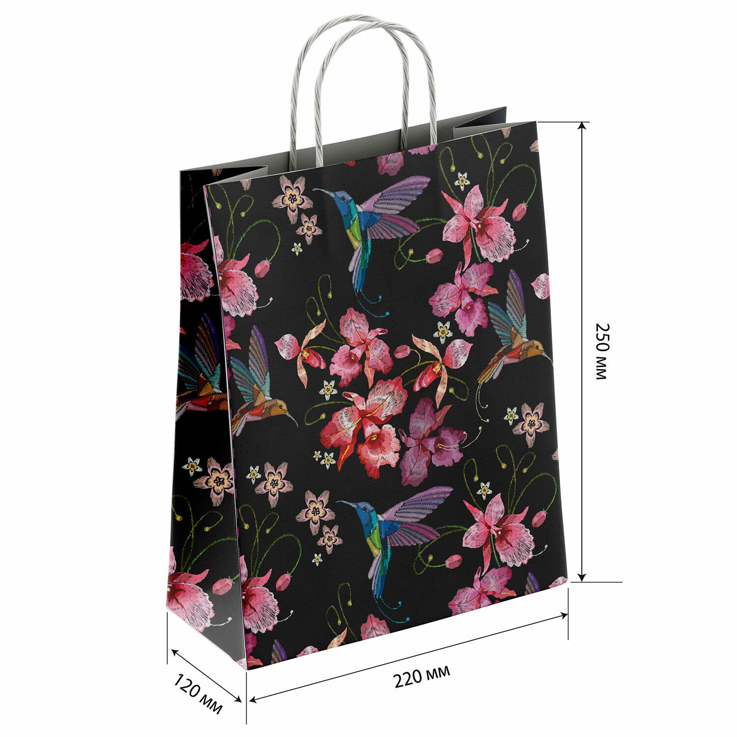 Крафт пакет бумажный Колибри 22х12х25см с кручеными ручками, плотность 100 гр/м2, бел, 115328