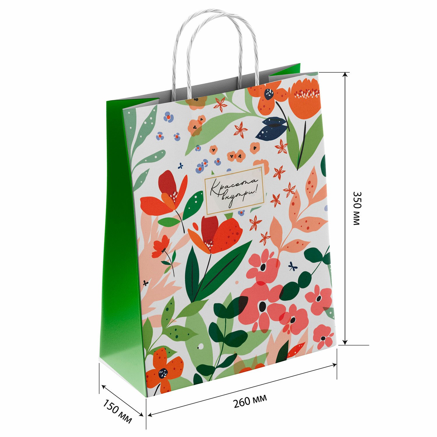 Крафт пакет бумажный Красота внутри 26х15х35см с кручеными ручками, плотность 100гр/м, 113563