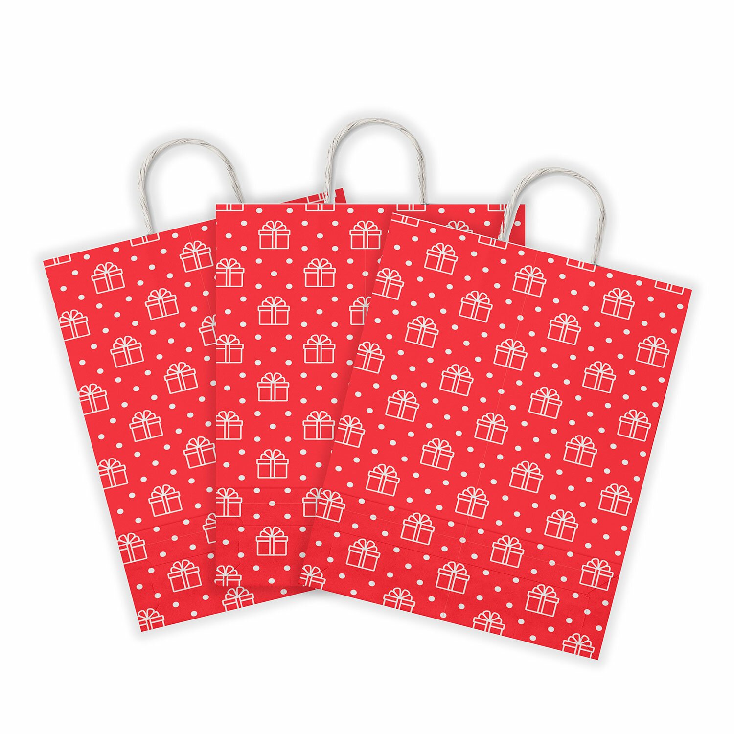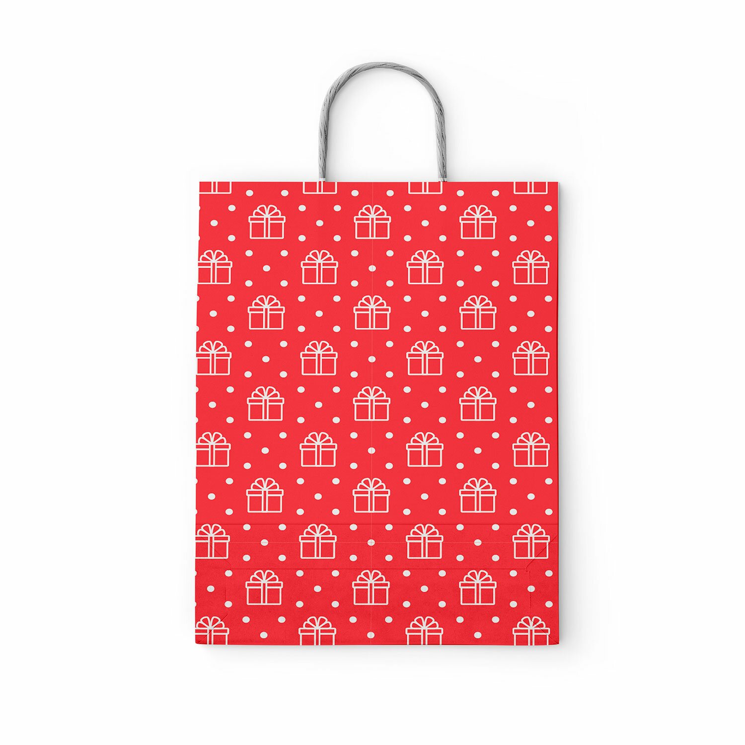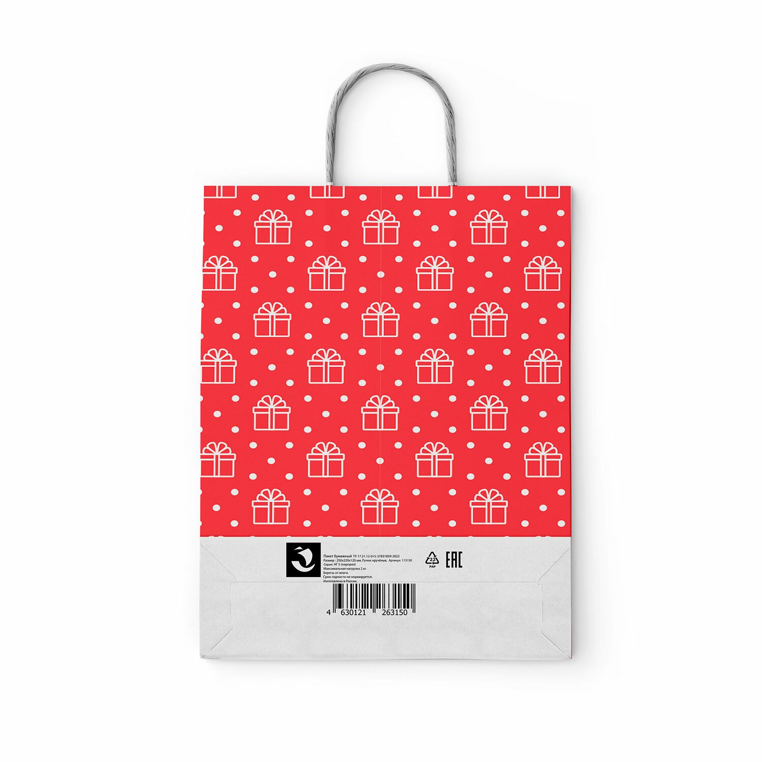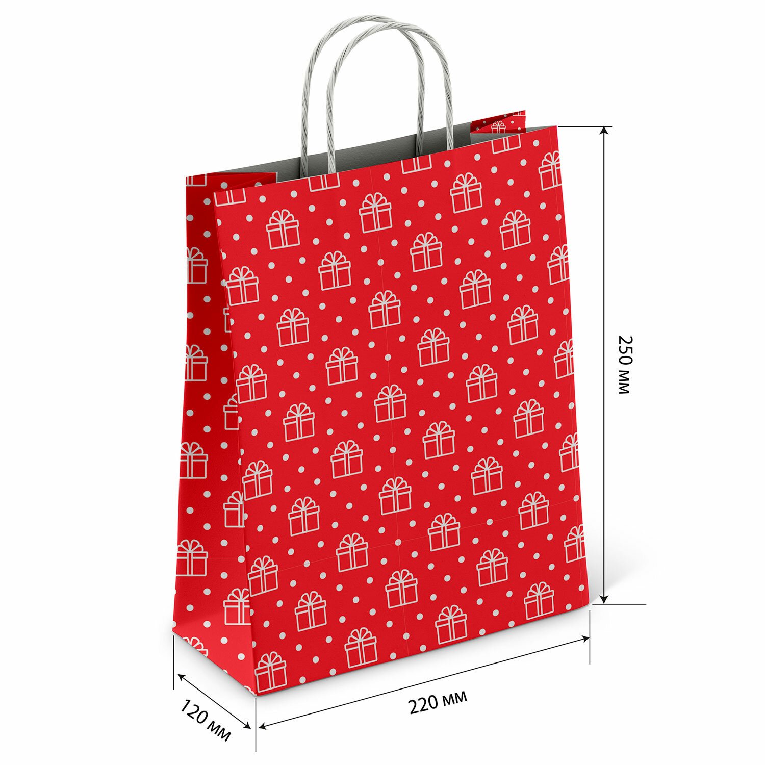 Крафт пакет бумажный Горох на красном 22х12х25см с кручеными ручками, 100 гр/м2, белы, 112979
