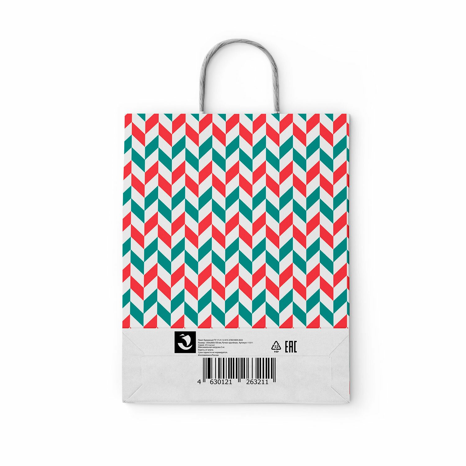 Крафт пакет бумажный Геометрия 26х15х35см с кручеными ручками, плотность 100 гр/м2, б, 112306