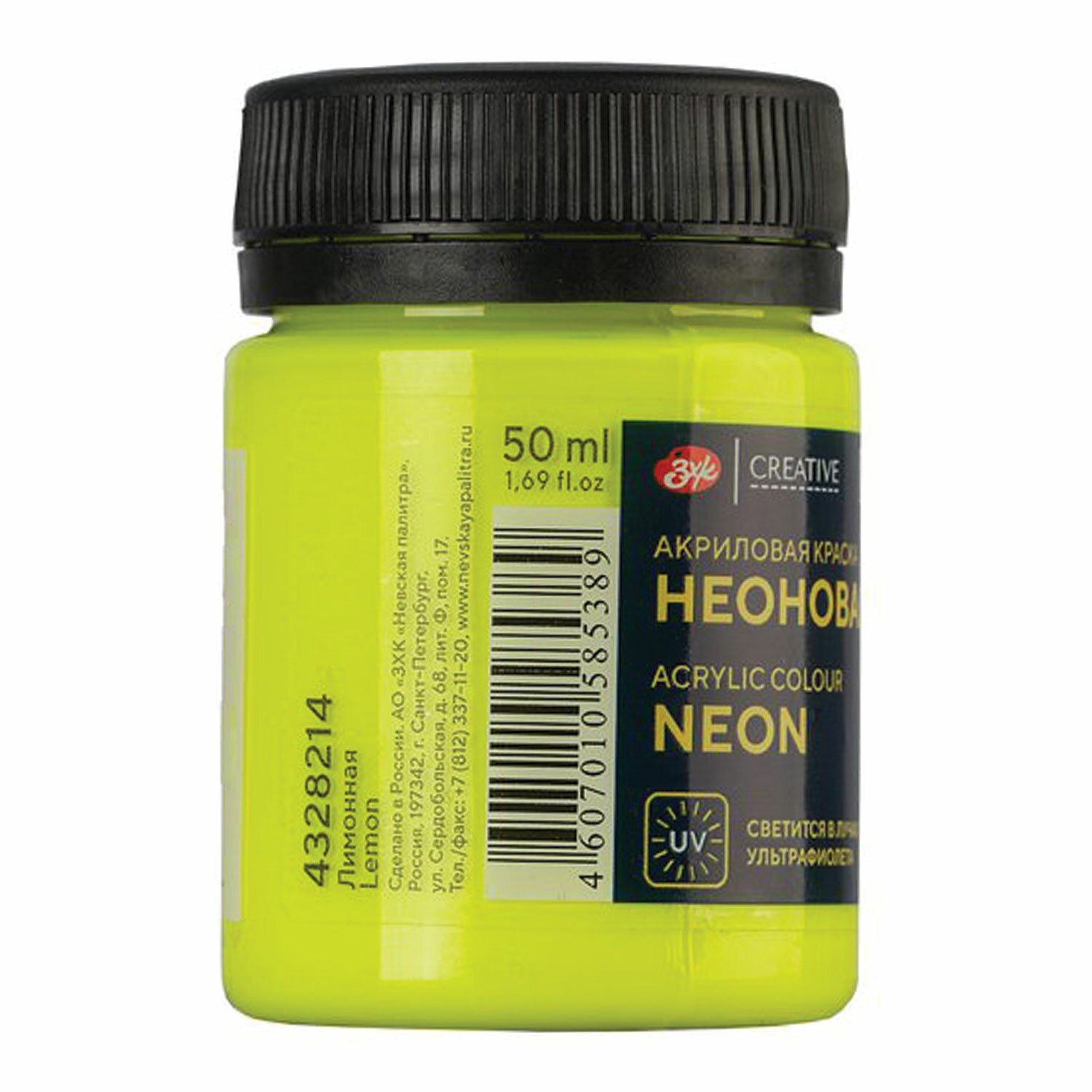 Краска акриловая флуоресцентная "Декола", банка 50 мл, лимонная, 4328214