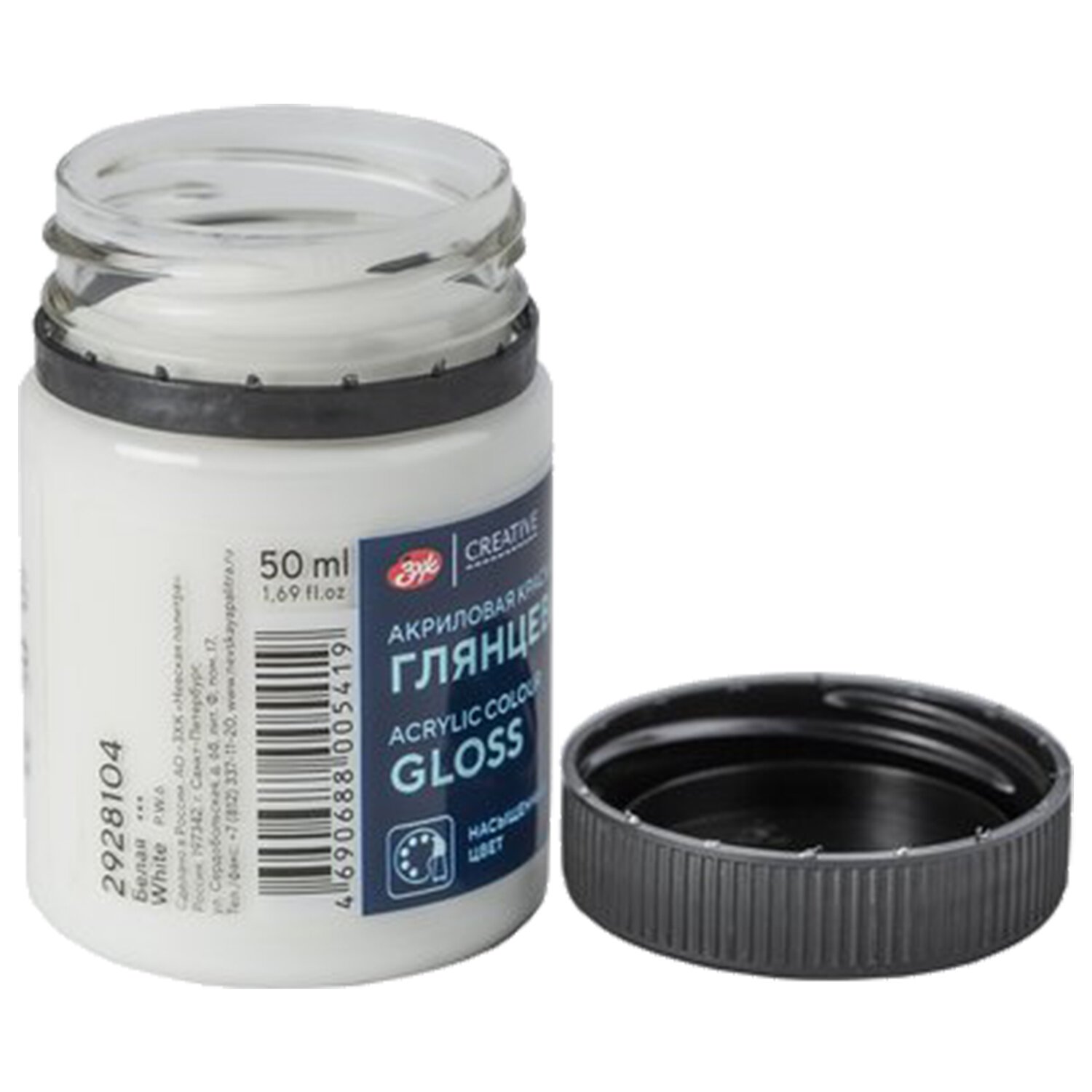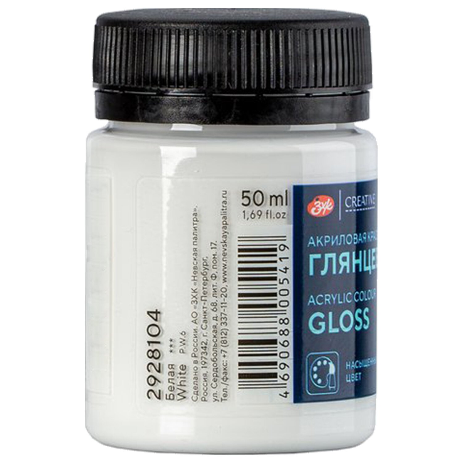 Краска акриловая глянцевая "Декола", банка 50 мл, белая, 2928104