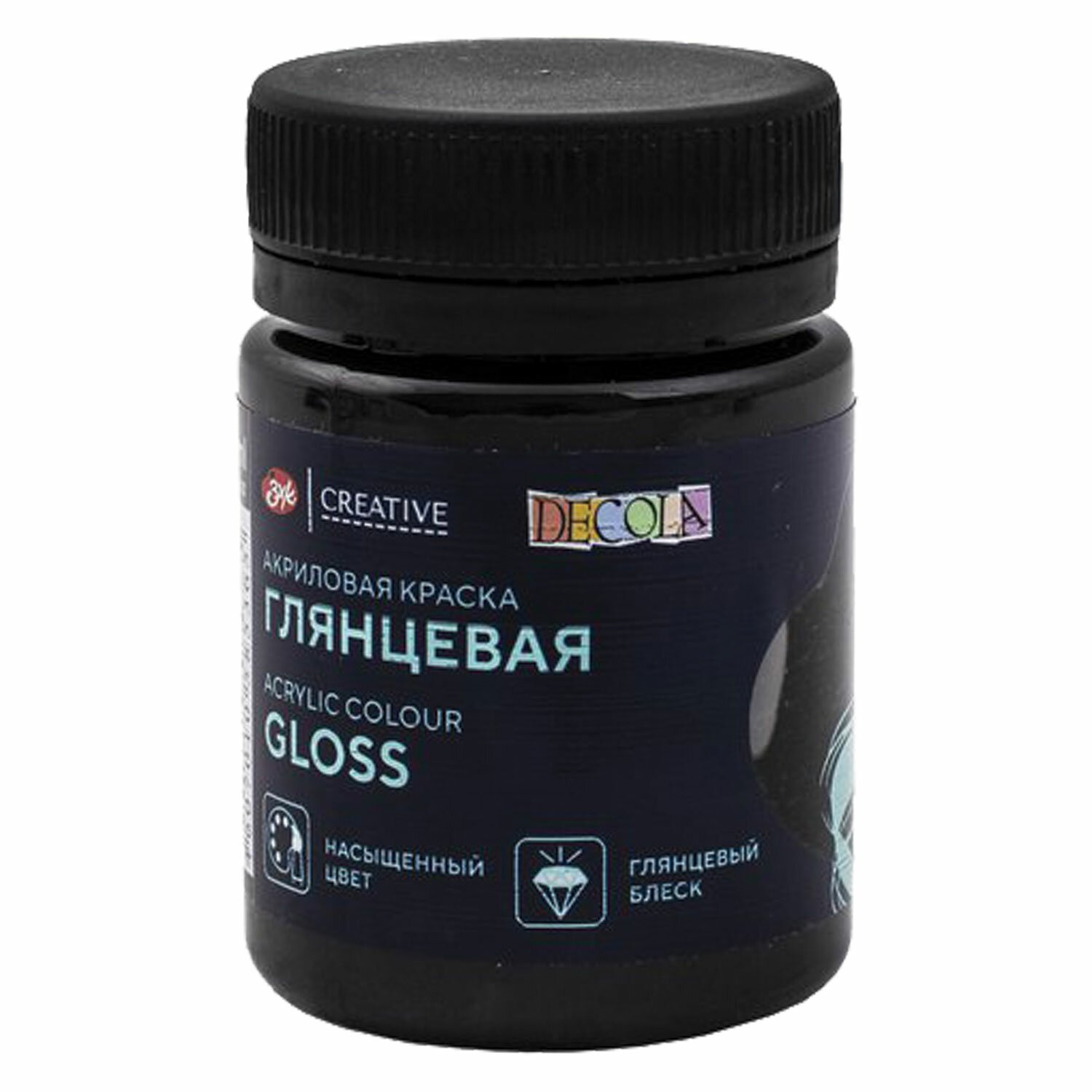 Краска акриловая глянцевая "Декола", банка 50 мл, черная, 2928810