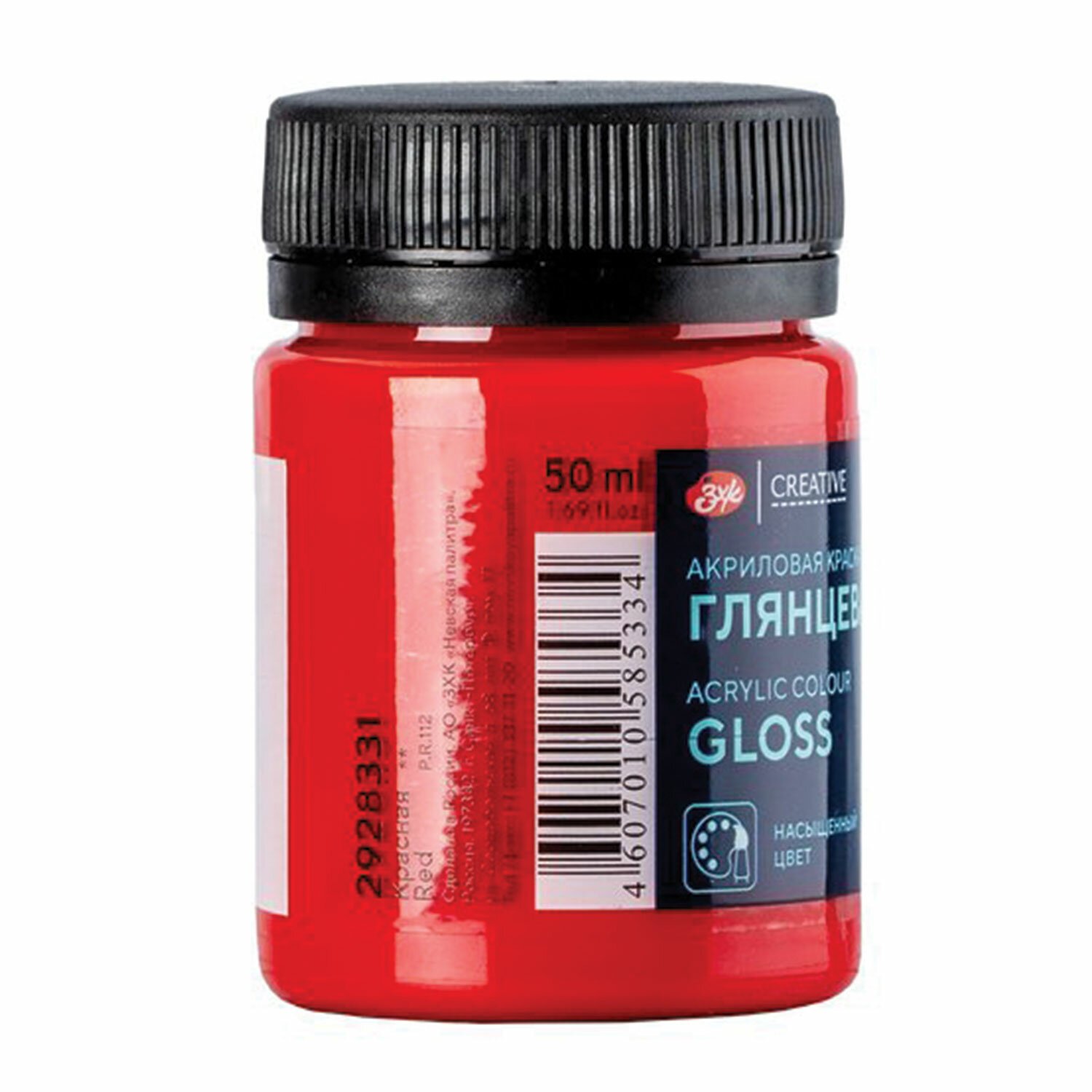 Краска акриловая глянцевая "Декола", банка 50 мл, красная, 2928331
