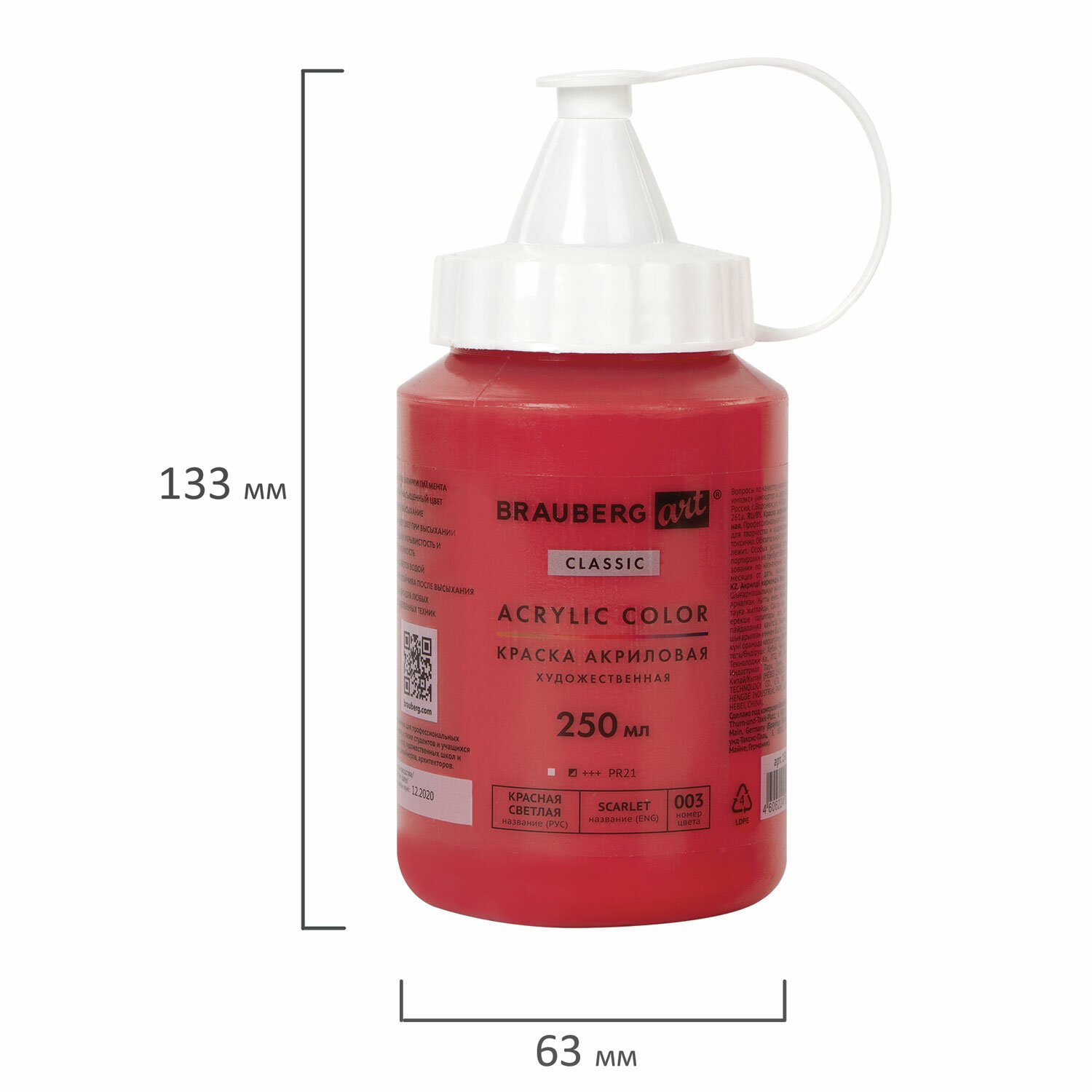 Краска акриловая художественная BRAUBERG ART CLASSIC, флакон 250 мл, КРАСНАЯ СВЕТЛАЯ, 191707