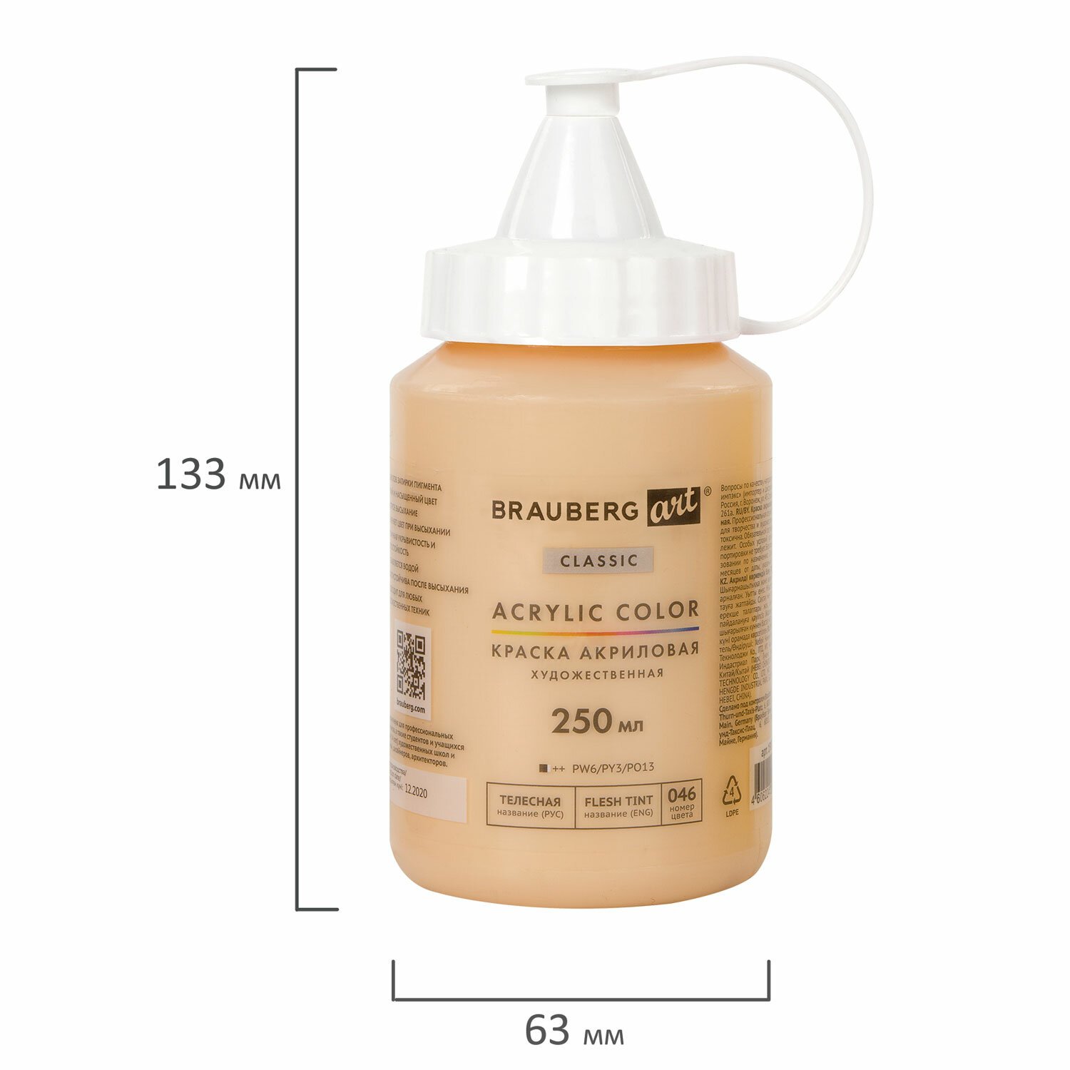 Краска акриловая художественная BRAUBERG ART CLASSIC, флакон 250 мл, ТЕЛЕСНАЯ, 191708