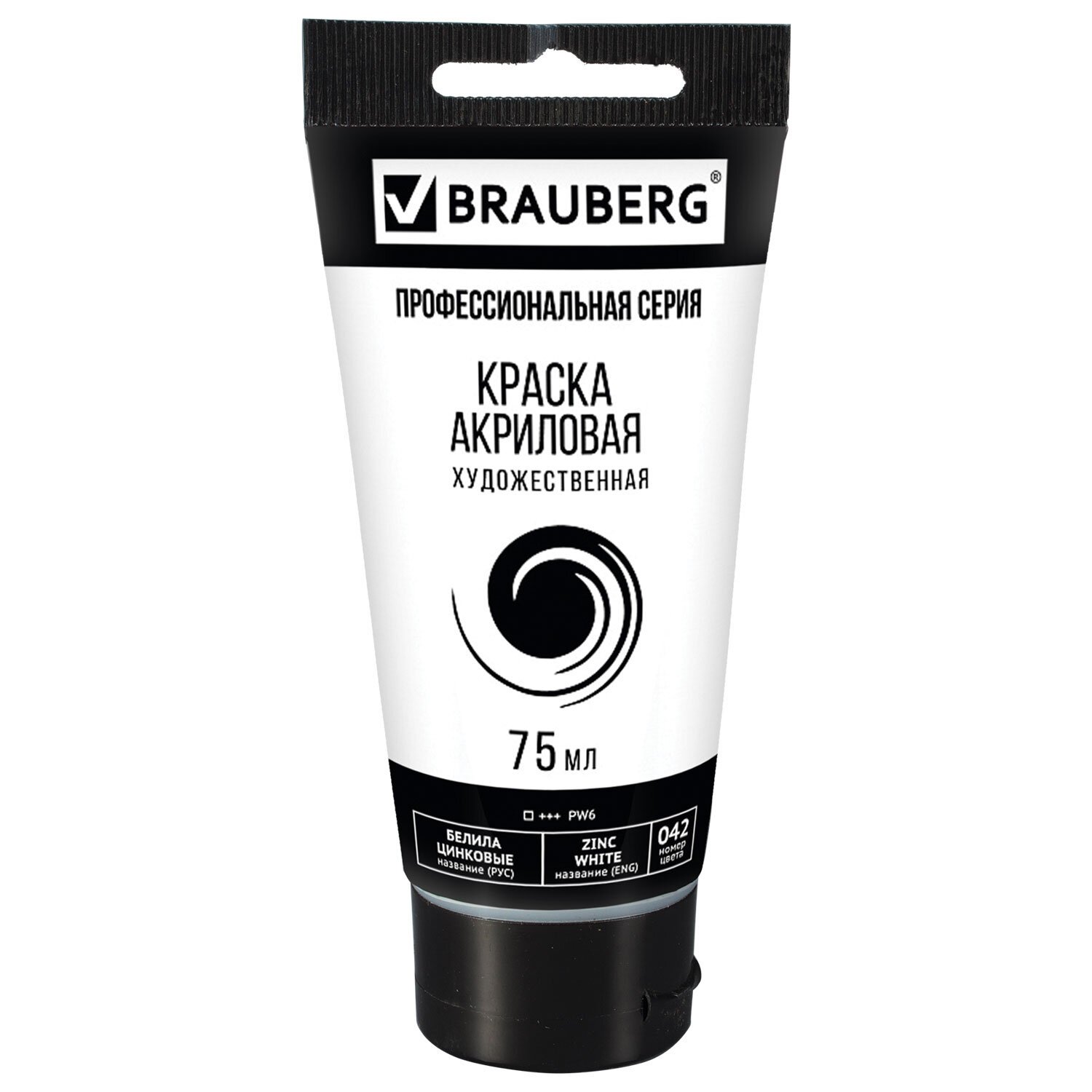 Краска акриловая художественная BRAUBERG ART CLASSIC, туба 75 мл, БЕЛИЛА ЦИНКОВЫЕ, 191587