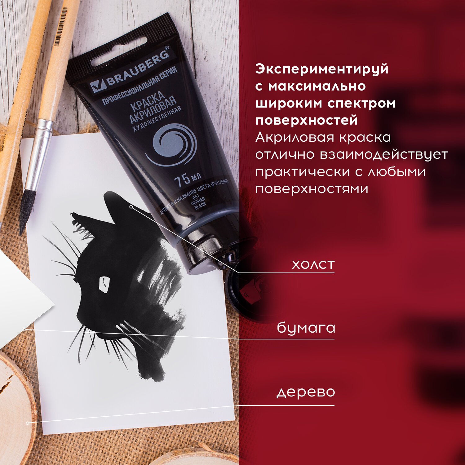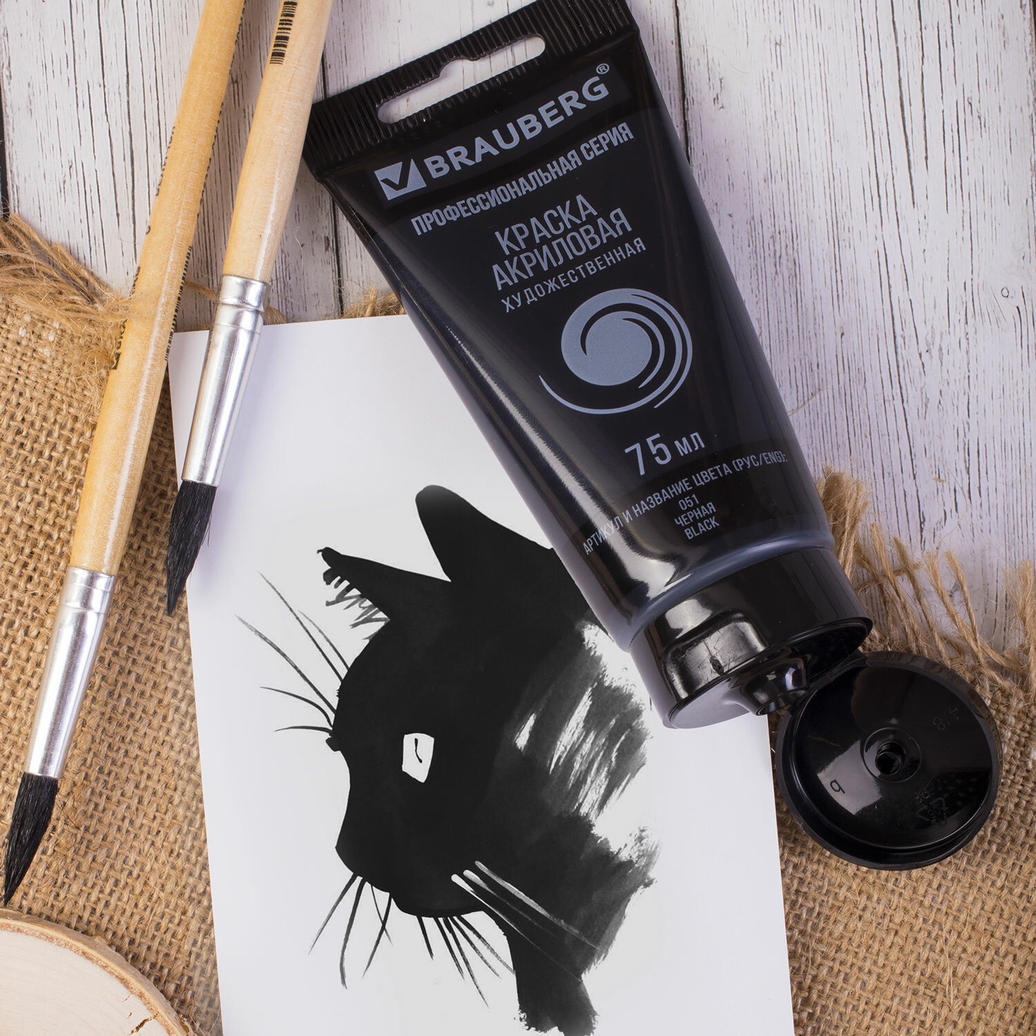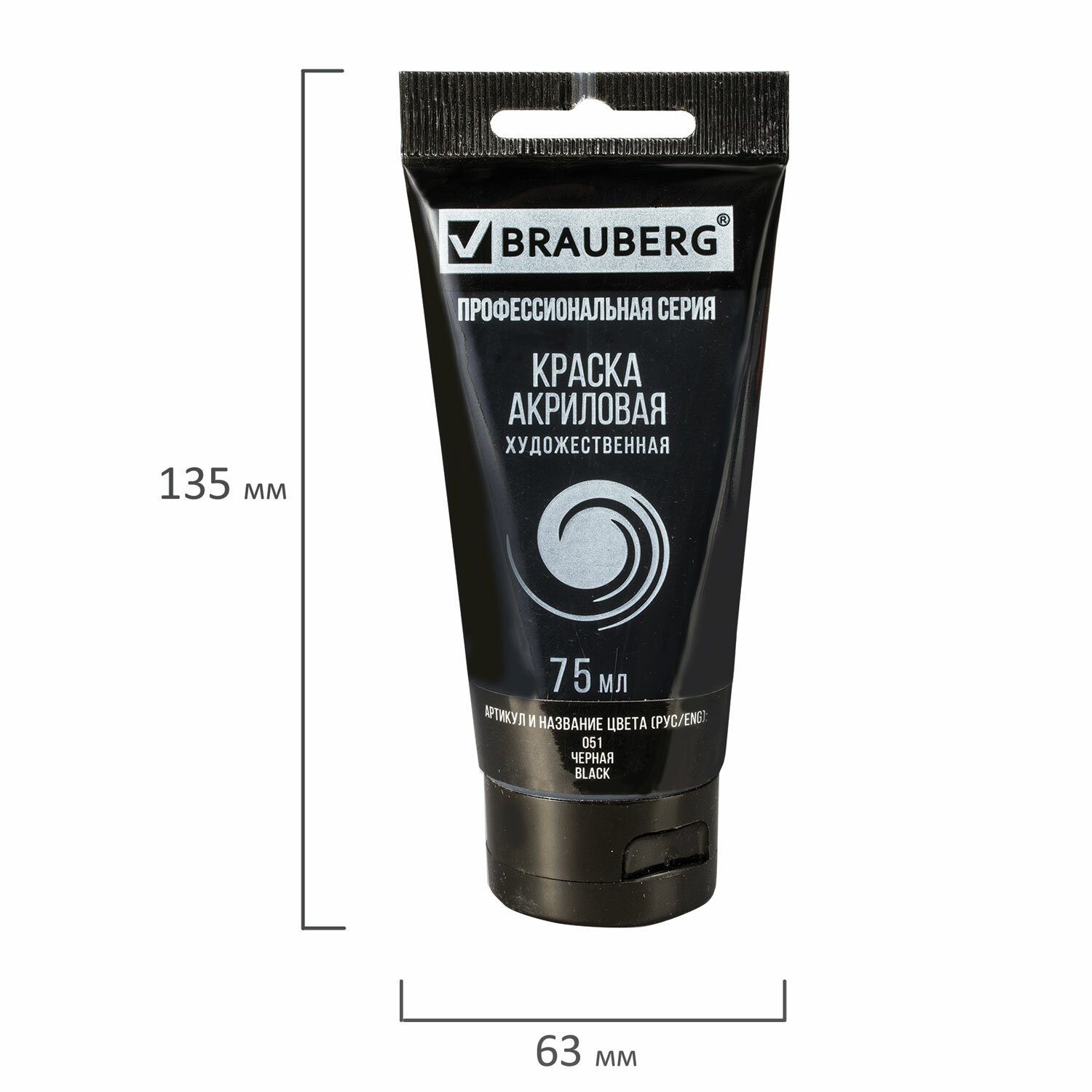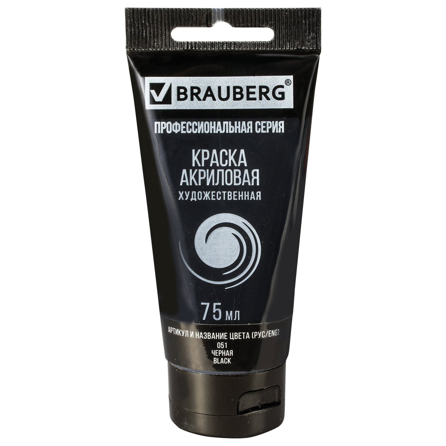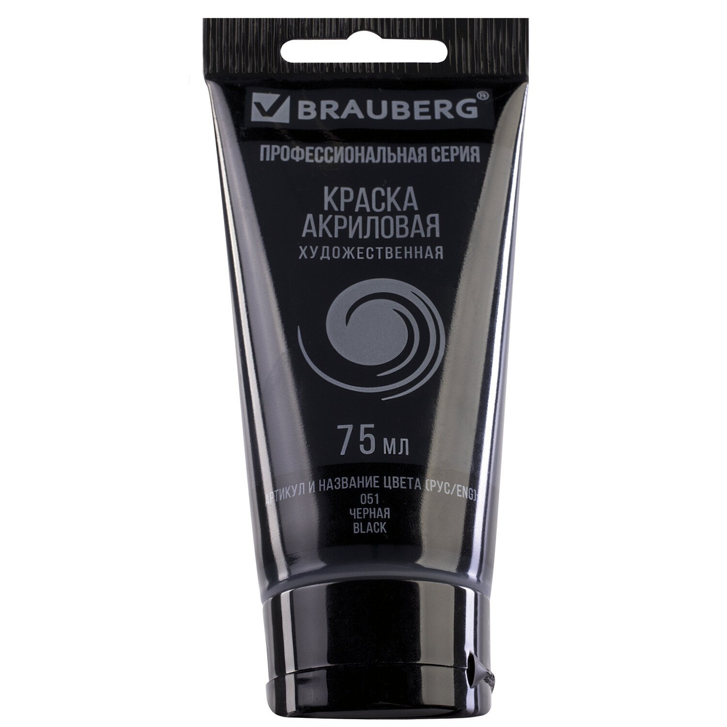 Краска акриловая художественная BRAUBERG ART CLASSIC, туба 75 мл, ЧЕРНАЯ, 191116