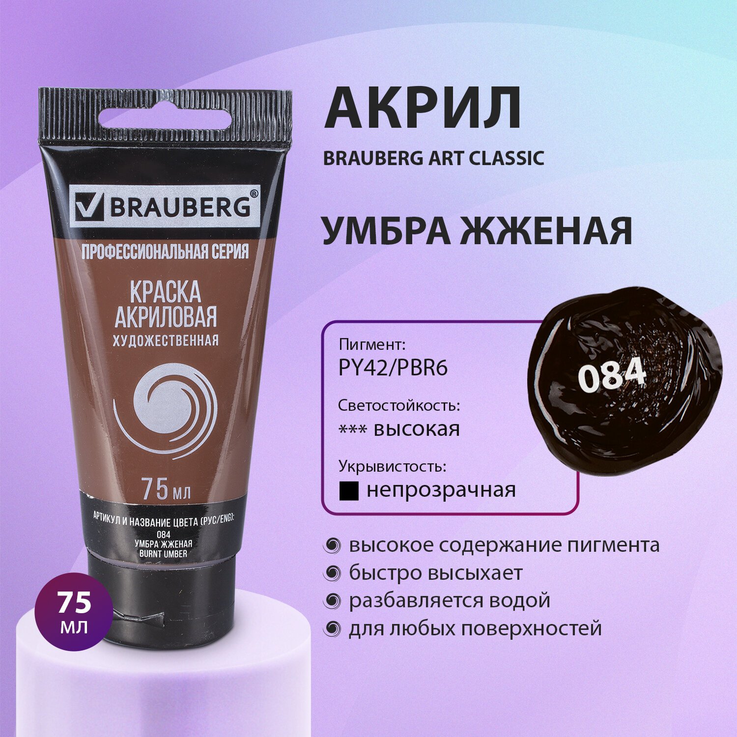 Краска акриловая художественная BRAUBERG ART CLASSIC, туба 75мл, УМБРА ЖЖЕНАЯ, 191113