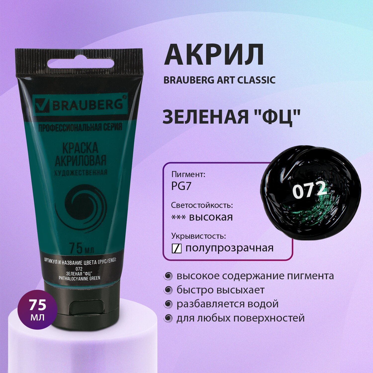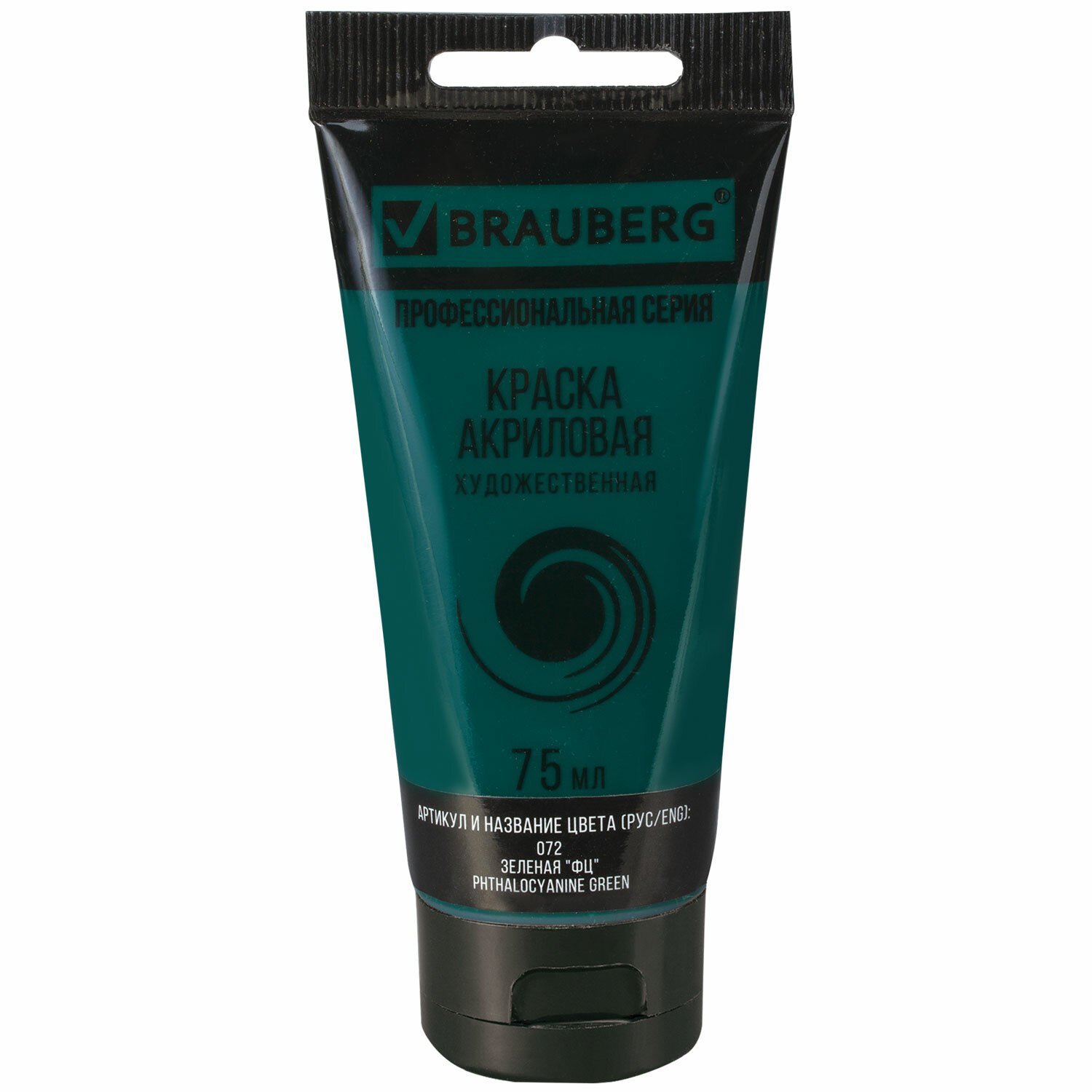 Краска акриловая художественная BRAUBERG ART CLASSIC, туба 75мл, ЗЕЛЕНАЯ "ФЦ", 191108