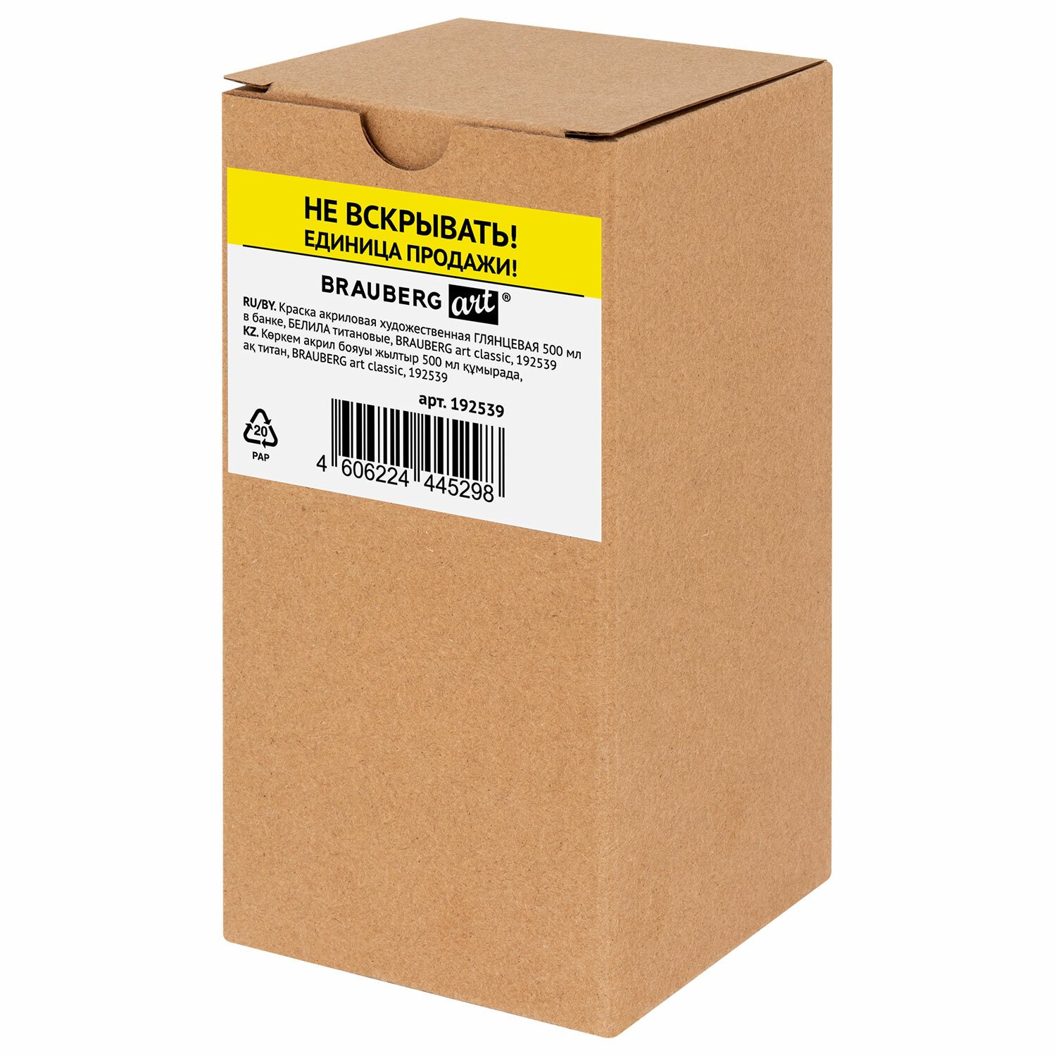 Краска акриловая художественная ГЛЯНЦЕВАЯ, 500 мл в банке, белила титановые, BRAUBERG ART, 192539