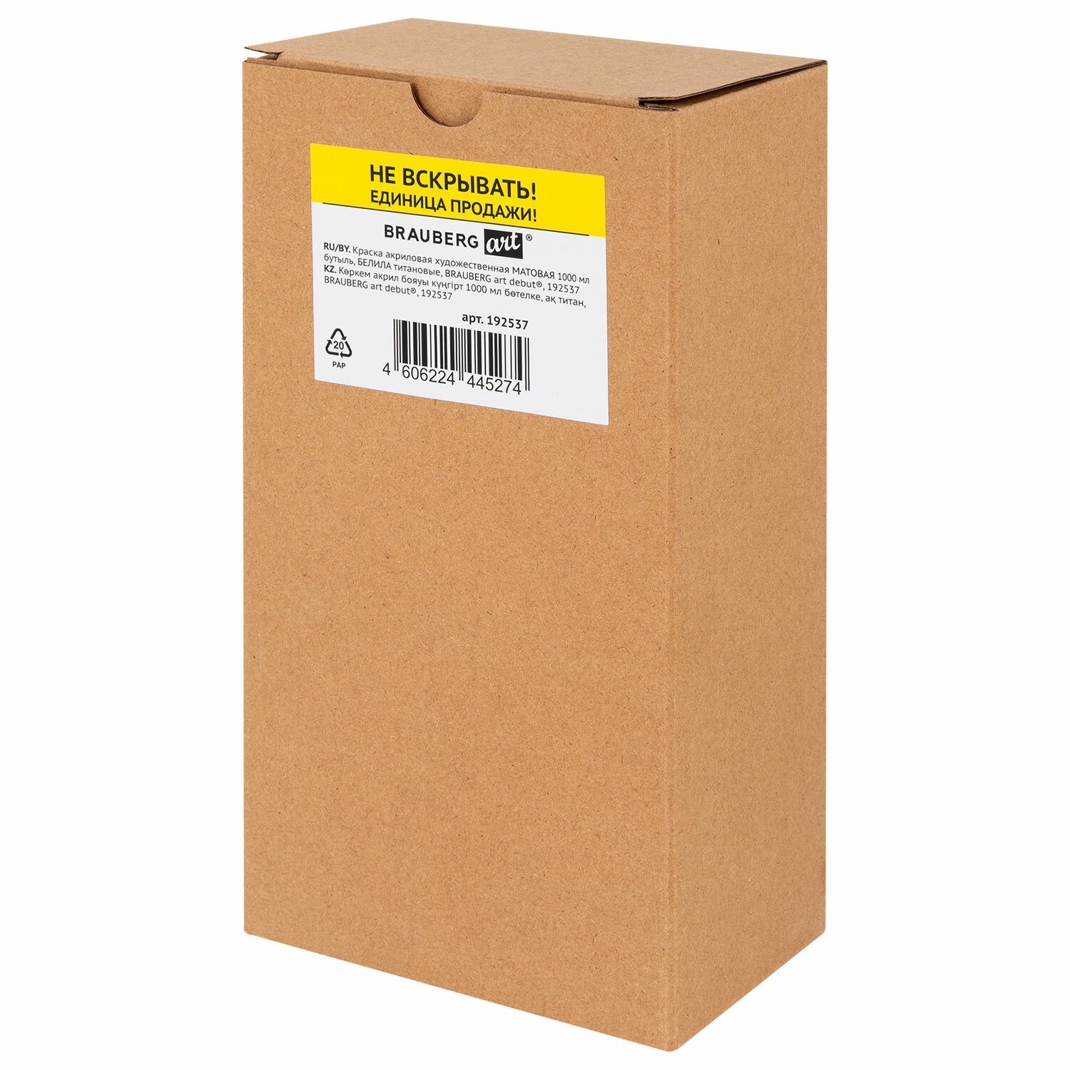 Краска акриловая художественная МАТОВАЯ 1000 мл бутыль, белила титановые, BRAUBERG ART DEBUT, 192537