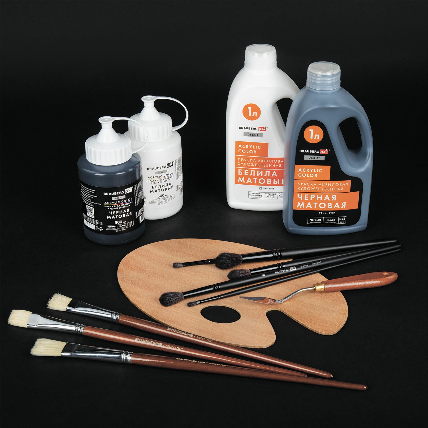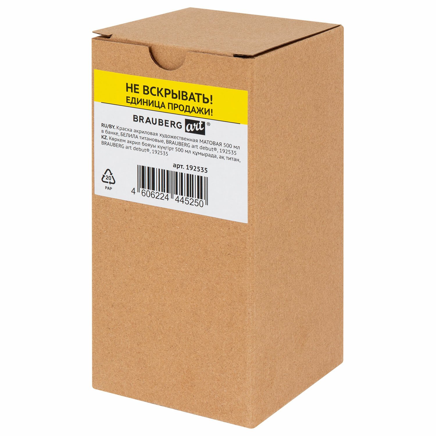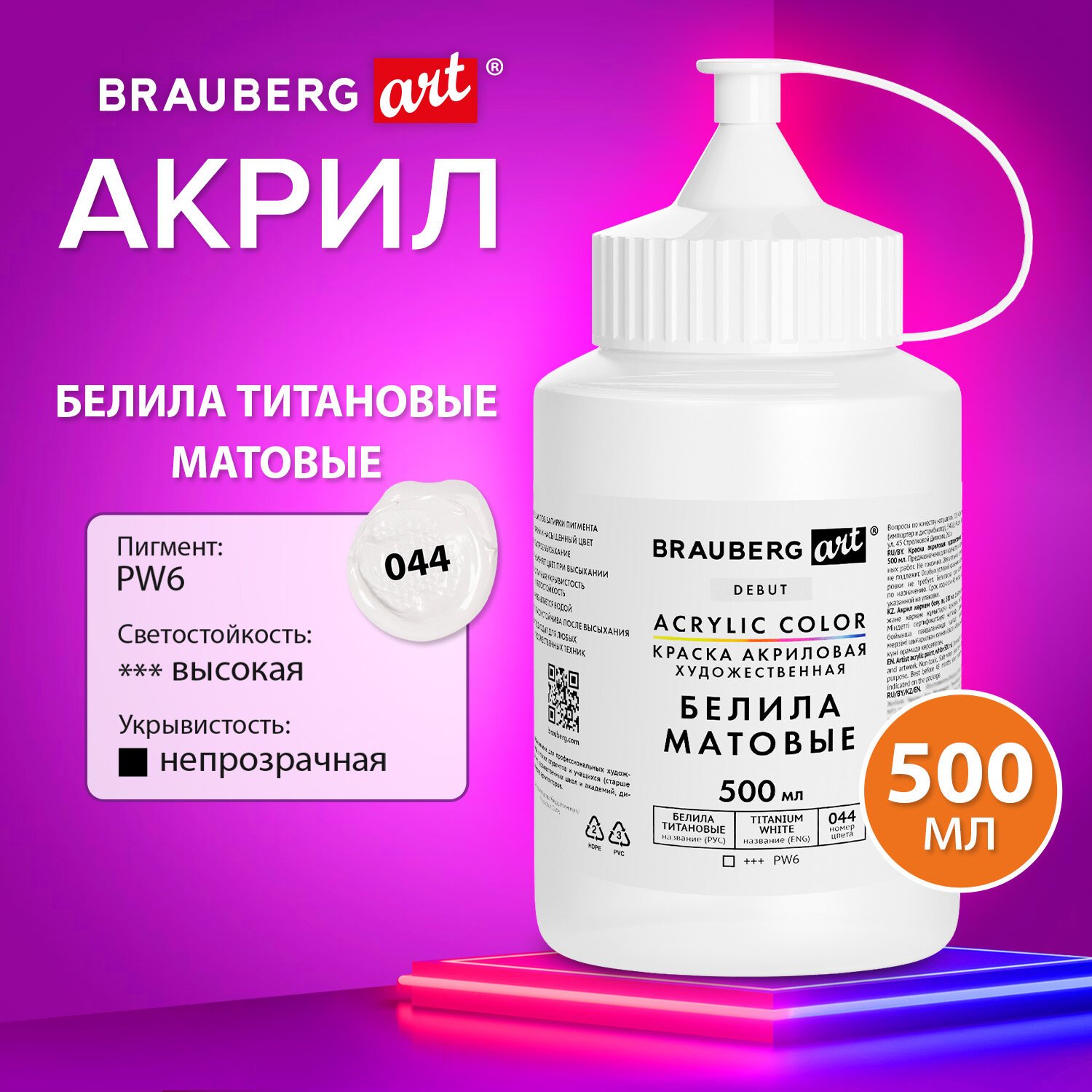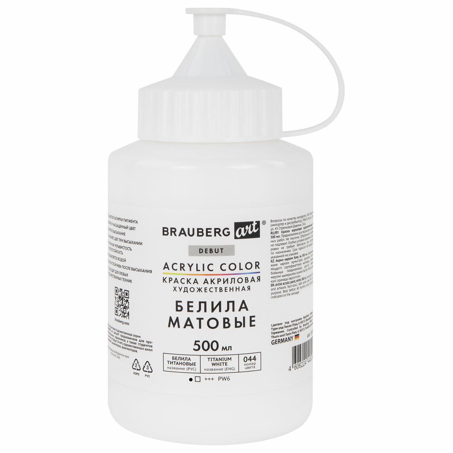 Краска акриловая художественная МАТОВАЯ 500 мл в банке, БЕЛИЛА титановые, BRAUBERG ART DEBUT, 192535