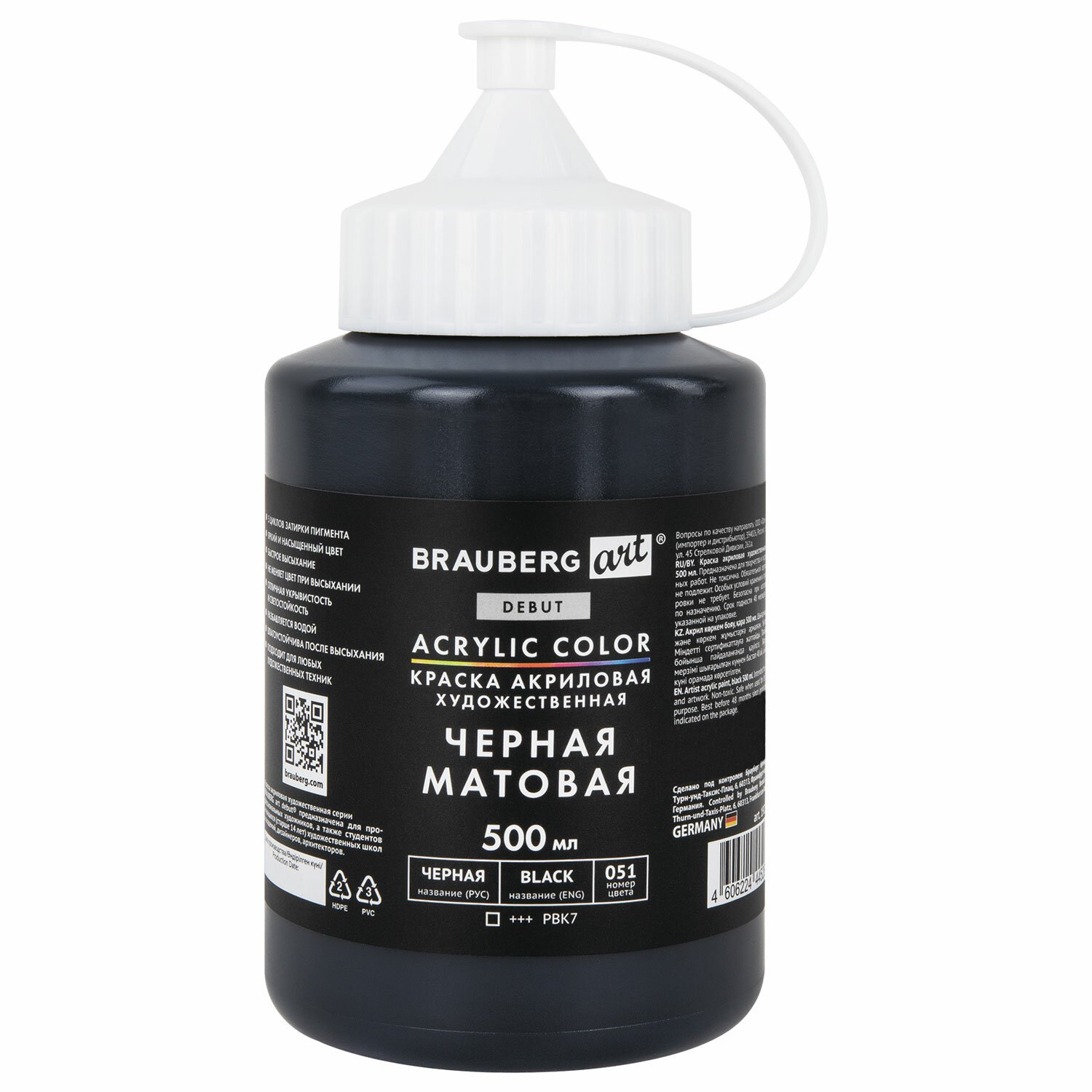Краска акриловая художественная МАТОВАЯ черная 500 мл в банке, BRAUBERG ART DEBUT, 192536