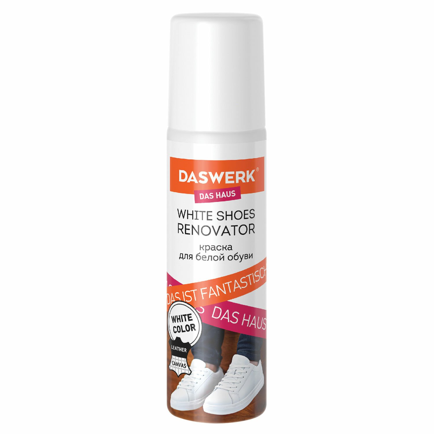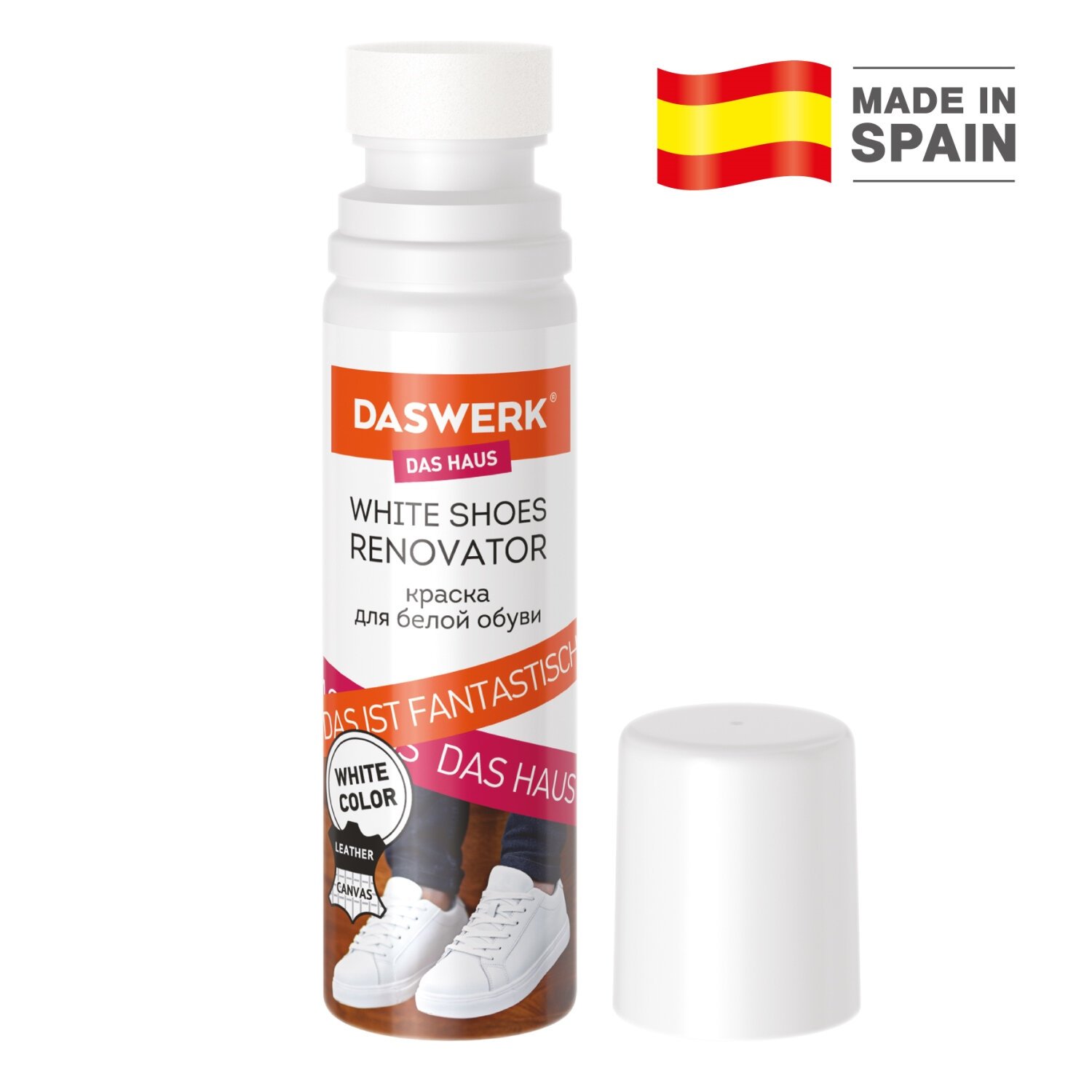 Высокоэффективный баллончик реставратор DASWERK "Shoes renovator" с белым красящим веществом на водной основе предназначен для обновления и восстановления внешнего вида белой обуви и аксессуаров из натуральной кожи, искусственной кожи, текстиля, экокожи, резины, а также мебели. Идеален для обработки кроссовок. Краситель окрашивает в белоснежный цвет поверхность кроссовок, подошву и шнурки благодаря высокому содержанию белого цветового пигмента. Удобный аппликатор позволяет равномерно обработать все изделия и устранить даже сильные потертости и царапины.