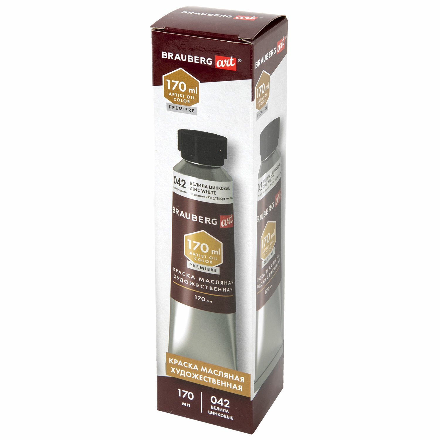 Краска масляная художественная BRAUBERG ART PREMIERE 170 мл, проф. серия, БЕЛИЛА ЦИНКОВЫЕ, 191395