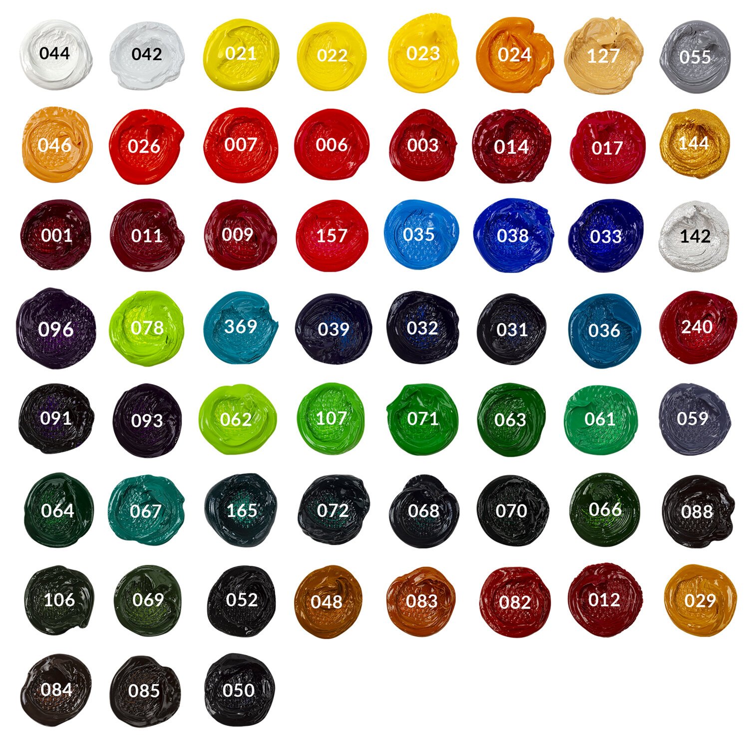 Краска имеет 5 степеней затирки пигмента. Вязкая текстура краски обеспечивает сохранение ее эластичности в течение длительного времени. Все краски легко смешиваются между собой. Объем тубы - 170 мл. Цвет - белила титановые.