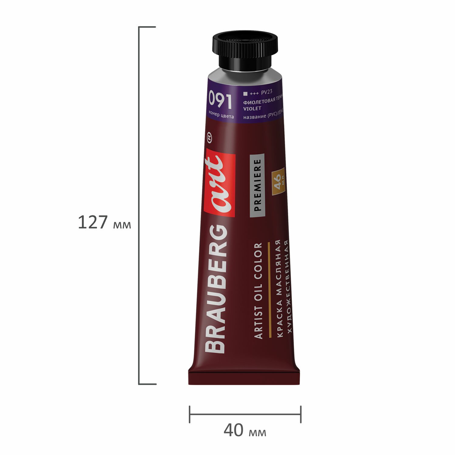 Краска масляная художественная BRAUBERG ART PREMIERE, 46 мл, проф. серия, ФИОЛЕТОВАЯ ТЕМНАЯ, 191421