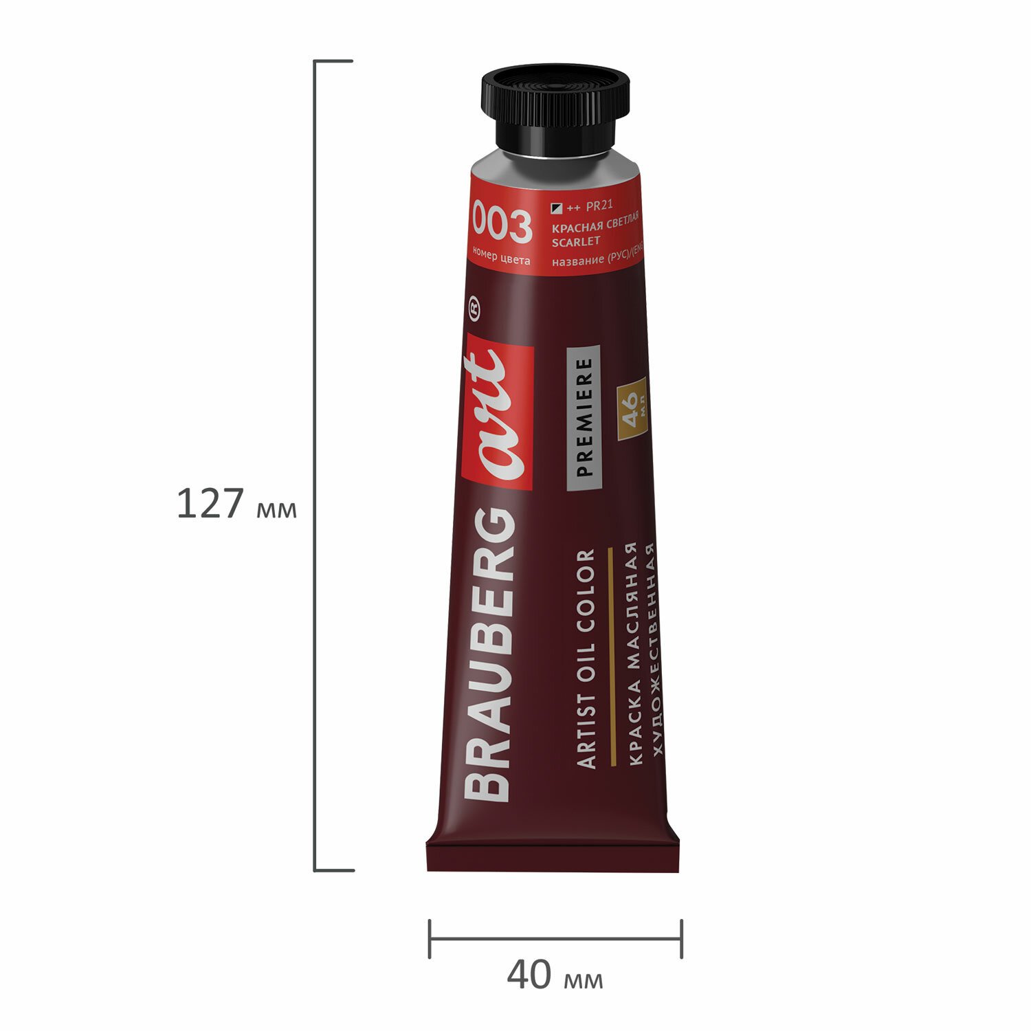 Краска масляная художественная BRAUBERG ART PREMIERE, 46 мл, проф. серия, КРАСНАЯ СВЕТЛАЯ, 191407