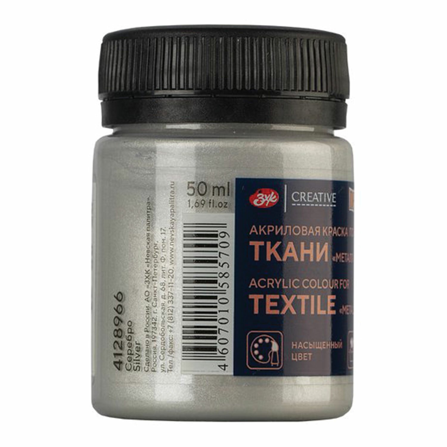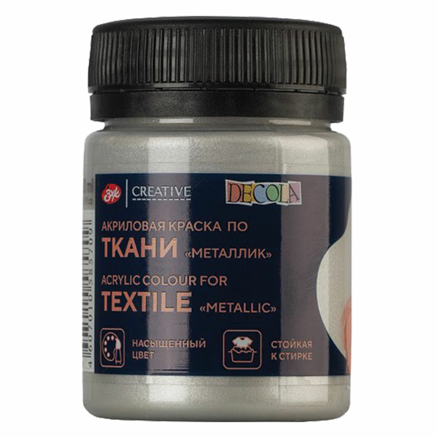Краска по ткани акриловая "Декола", банка 50 мл, серебряная, 4128966