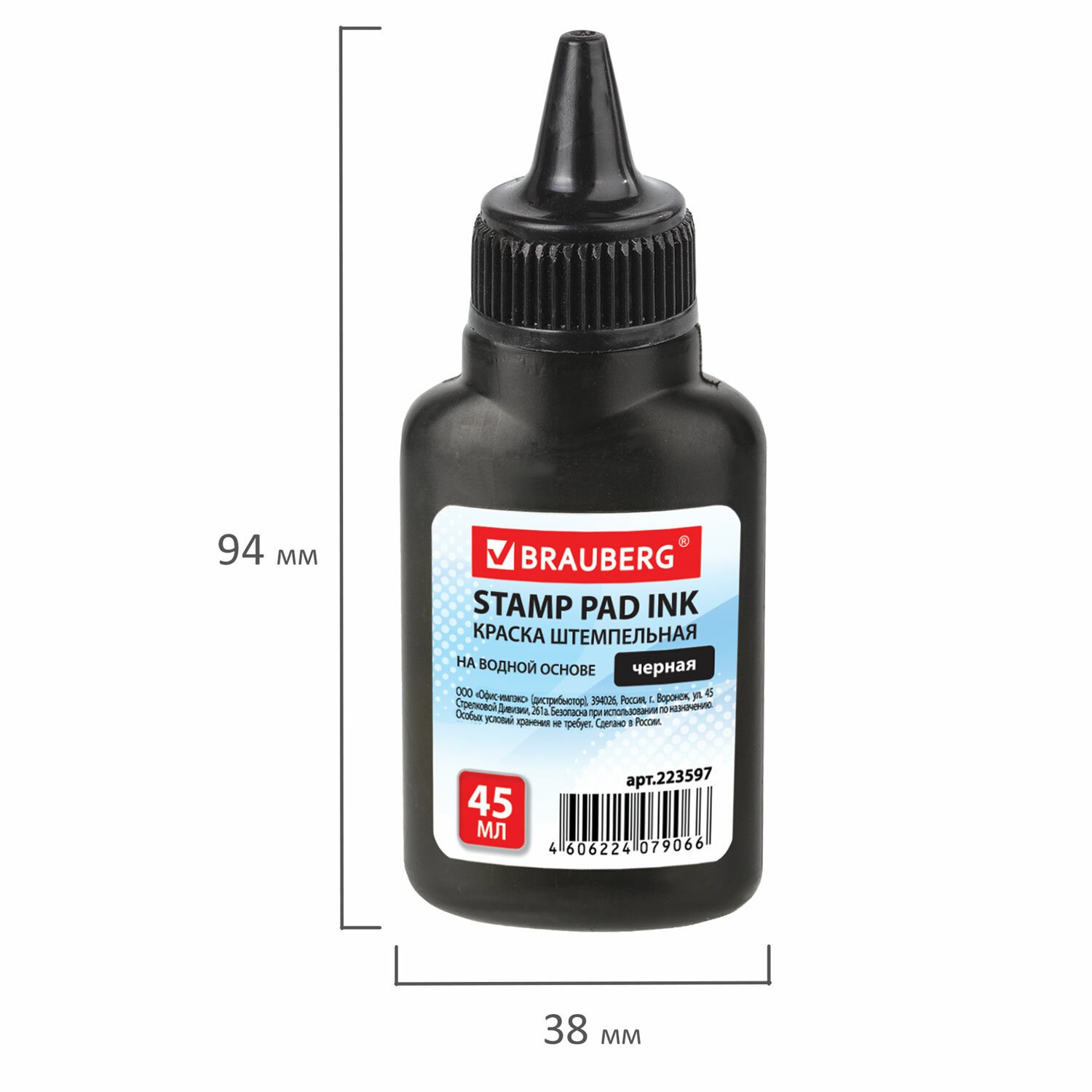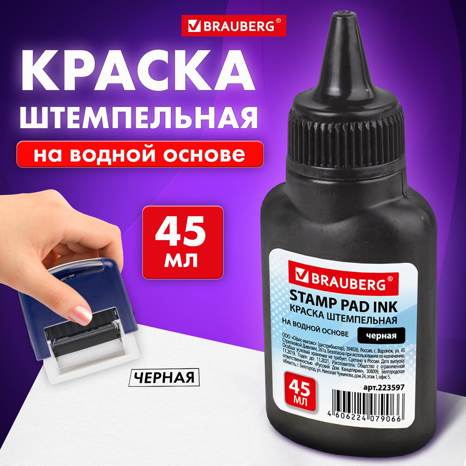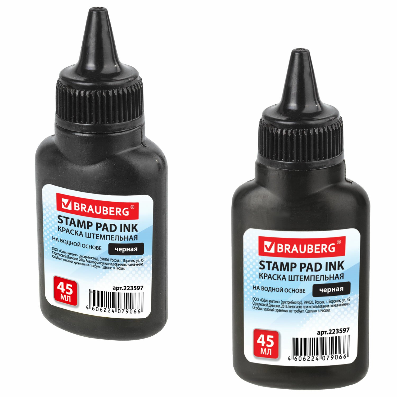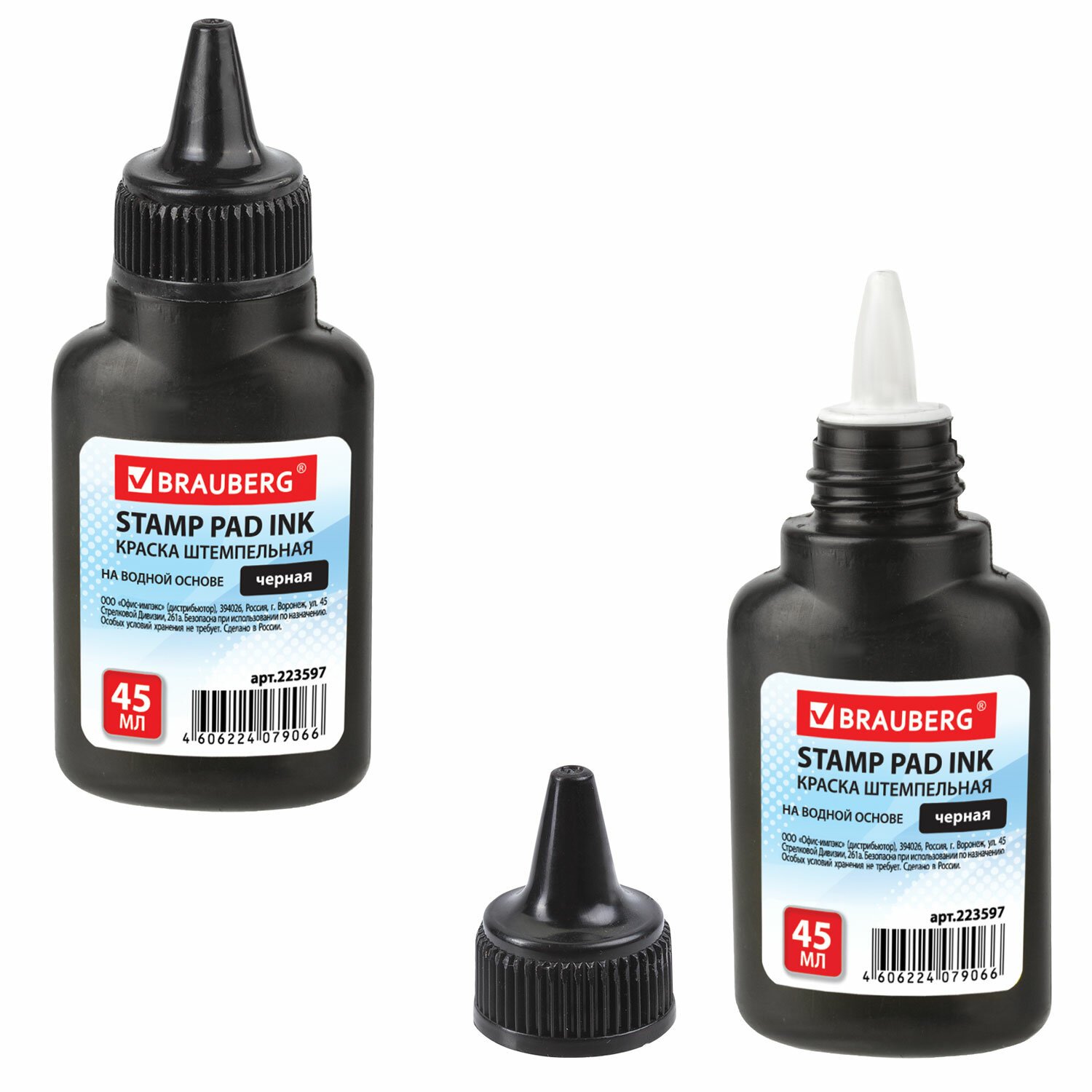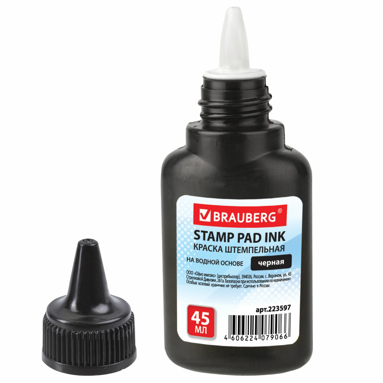 Краска штемпельная BRAUBERG, черная, 45 мл, на водной основе, 223597
