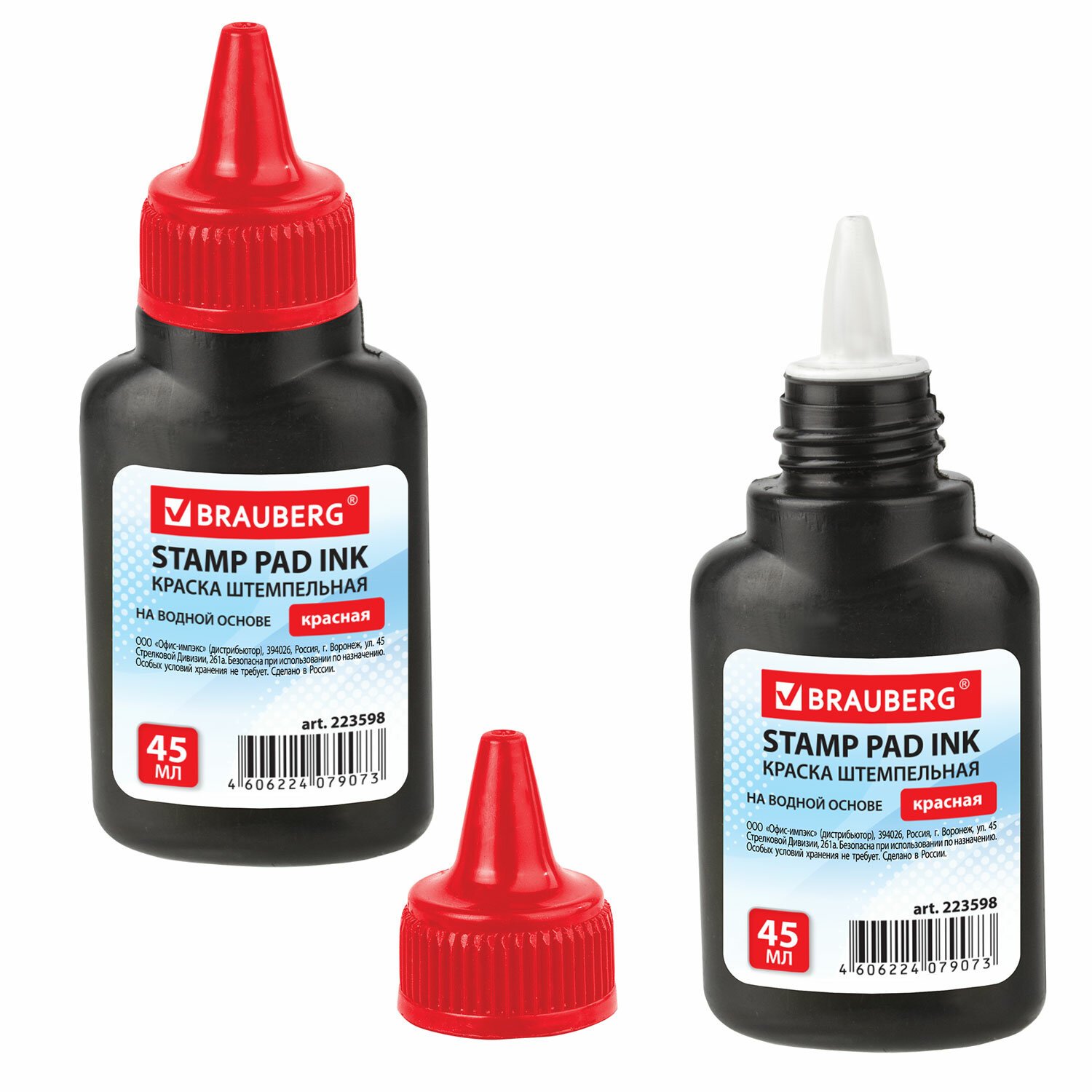 Краска штемпельная BRAUBERG, красная, 45 мл, на водной основе, 223598