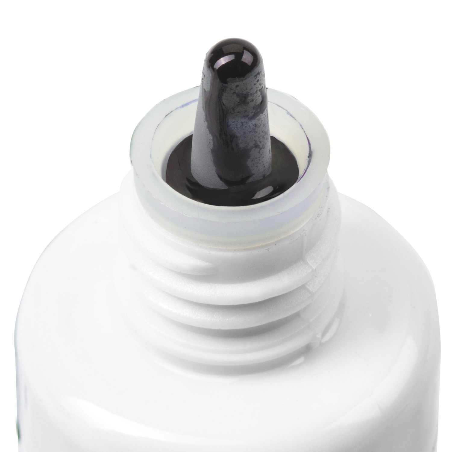 Оттиск штампа можно наносить на все виды бумаги, кроме глянцевой. Особенность данного продукта в том, что вокруг аппликатора имеется "углубление", в которое попадает излишняя краска при использовании, что позволяет аккуратно заправить печати и штампы. Высококачественные чернила черного цвета на водной основе. Время высыхания оттиска - 25 секунд. Удобный пластиковый флакон с дозатором. Объем - 30 мл.