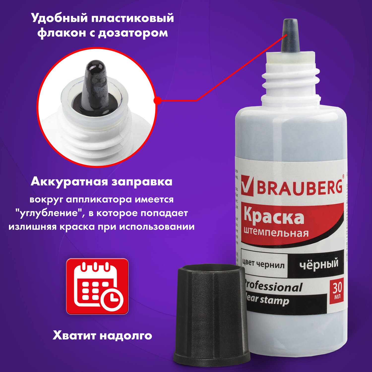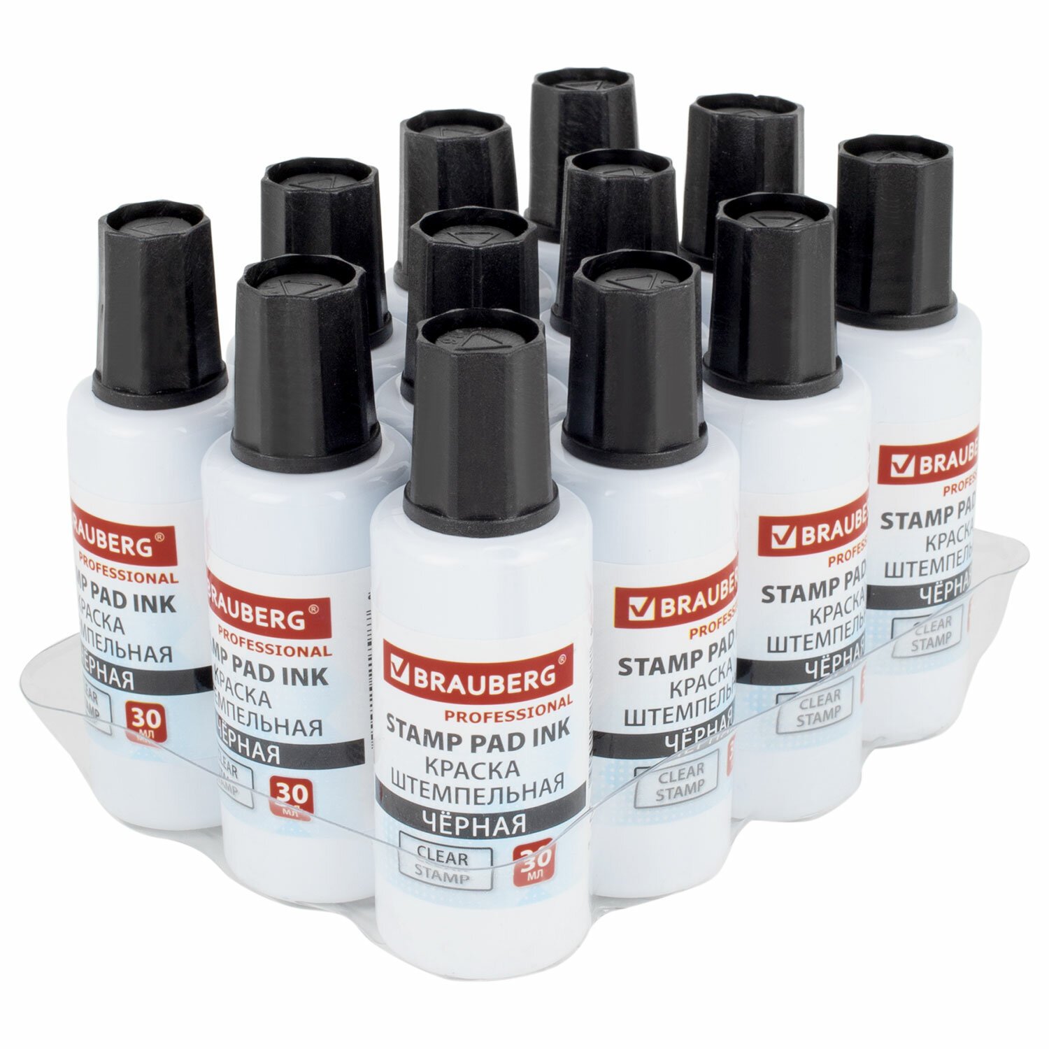 Краска штемпельная BRAUBERG PROFESSIONAL, clear stamp, черная, 30 мл, на водной основе, 227983