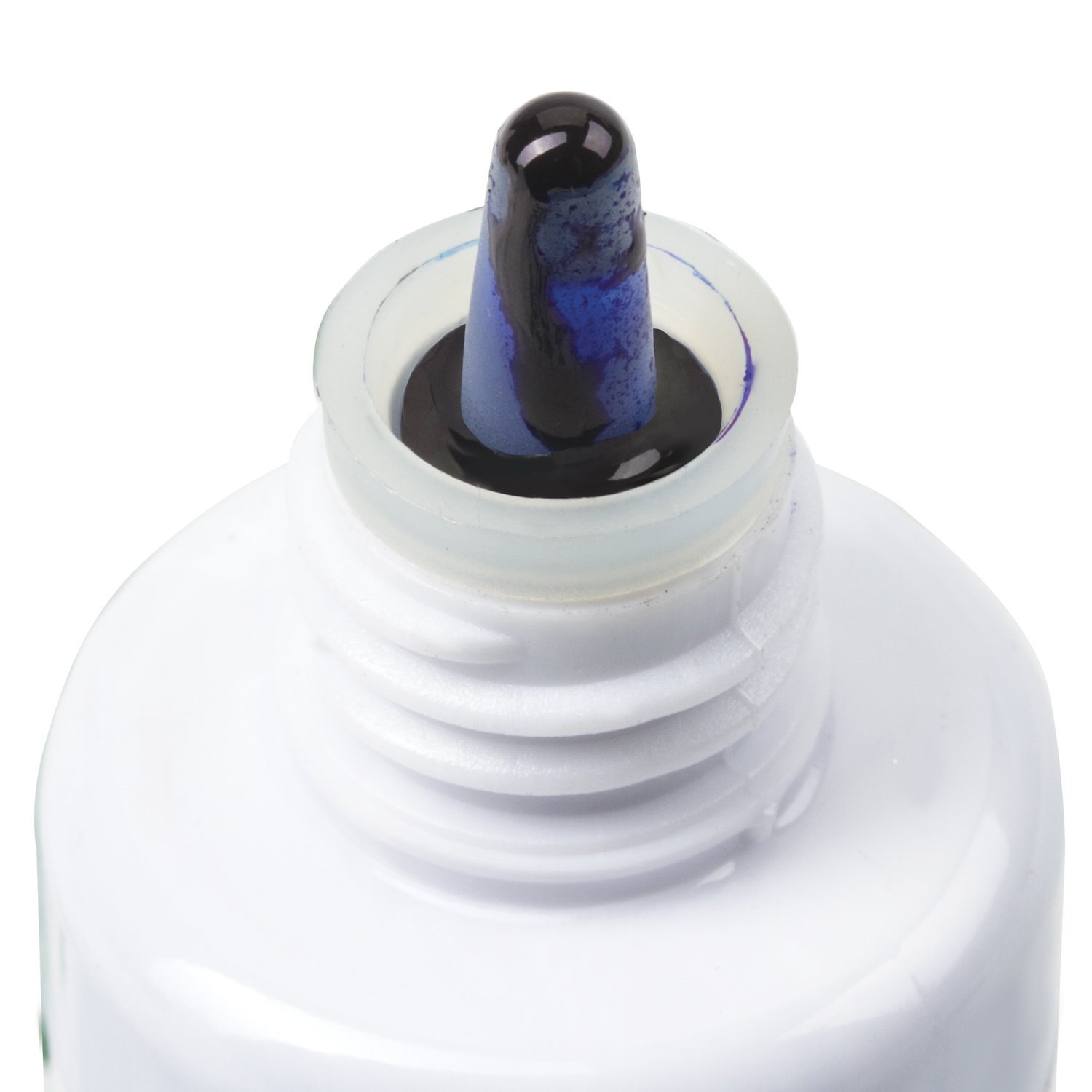 Оттиск штампа можно наносить на все виды бумаги, кроме глянцевой. Особенность данного продукта в том, что вокруг аппликатора имеется "углубление", в которое попадает излишняя краска при использовании, что позволяет аккуратно заправить печати и штампы. Высококачественные чернила синего цвета на водной основе. Время высыхания оттиска - 25 секунд. Удобный пластиковый флакон с дозатором. Объем - 30 мл.
