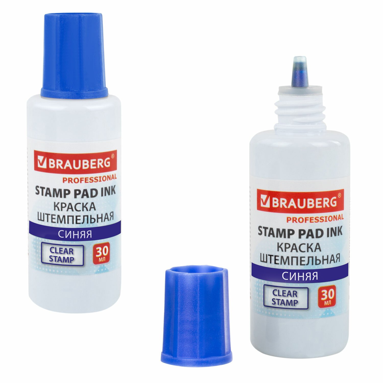 Краска штемпельная BRAUBERG PROFESSIONAL, clear stamp, синяя, 30 мл, на водной основе, 227981