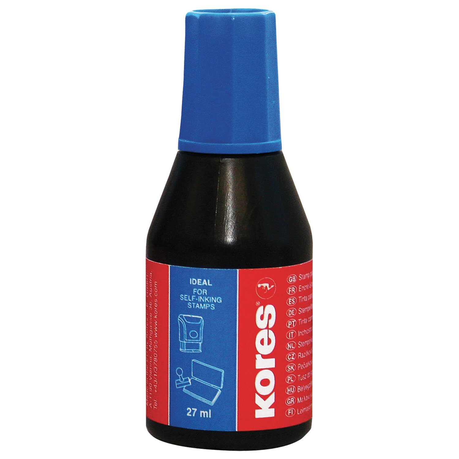 Штемпельная краска KORES на водно-масляной основе поставляется в пластиковом флаконе. Дозатор обеспечивает равномерное нанесение на штемпельную подушку. Подходит для использования со всеми видами резиновых штампов.