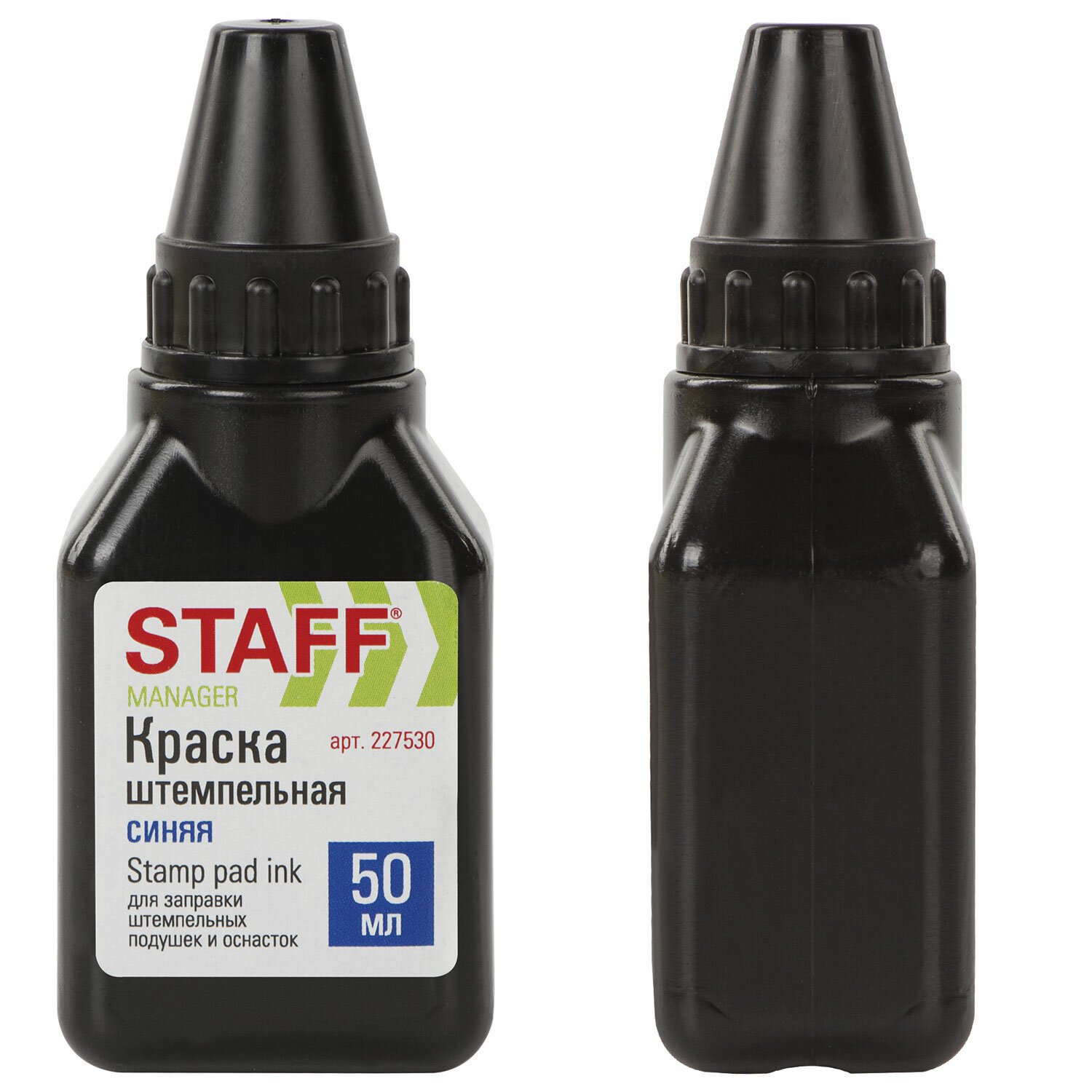 Краска штемпельная STAFF "Manager", синяя, 50 мл, на водно-спиртовой основе, 227530