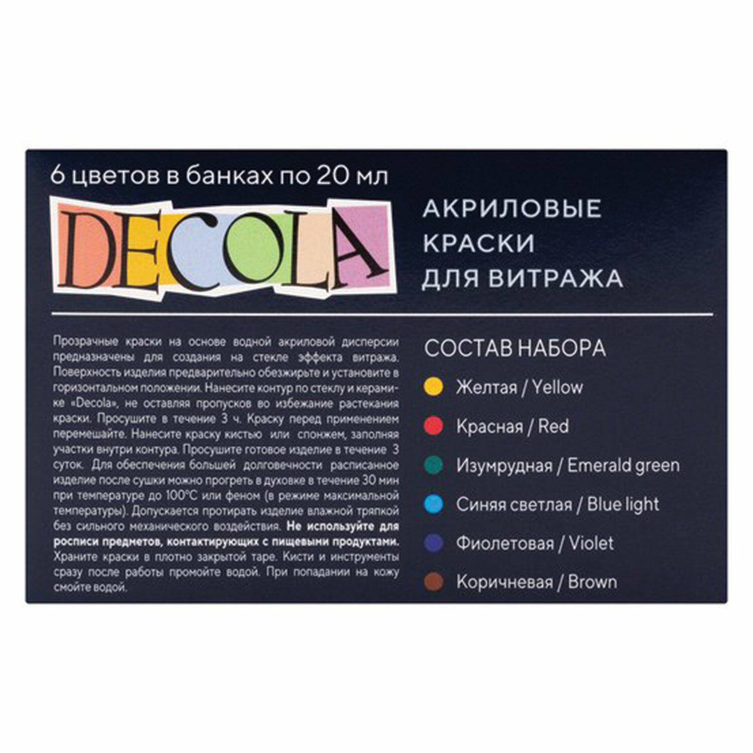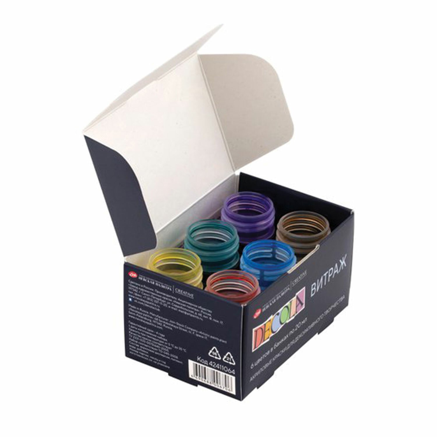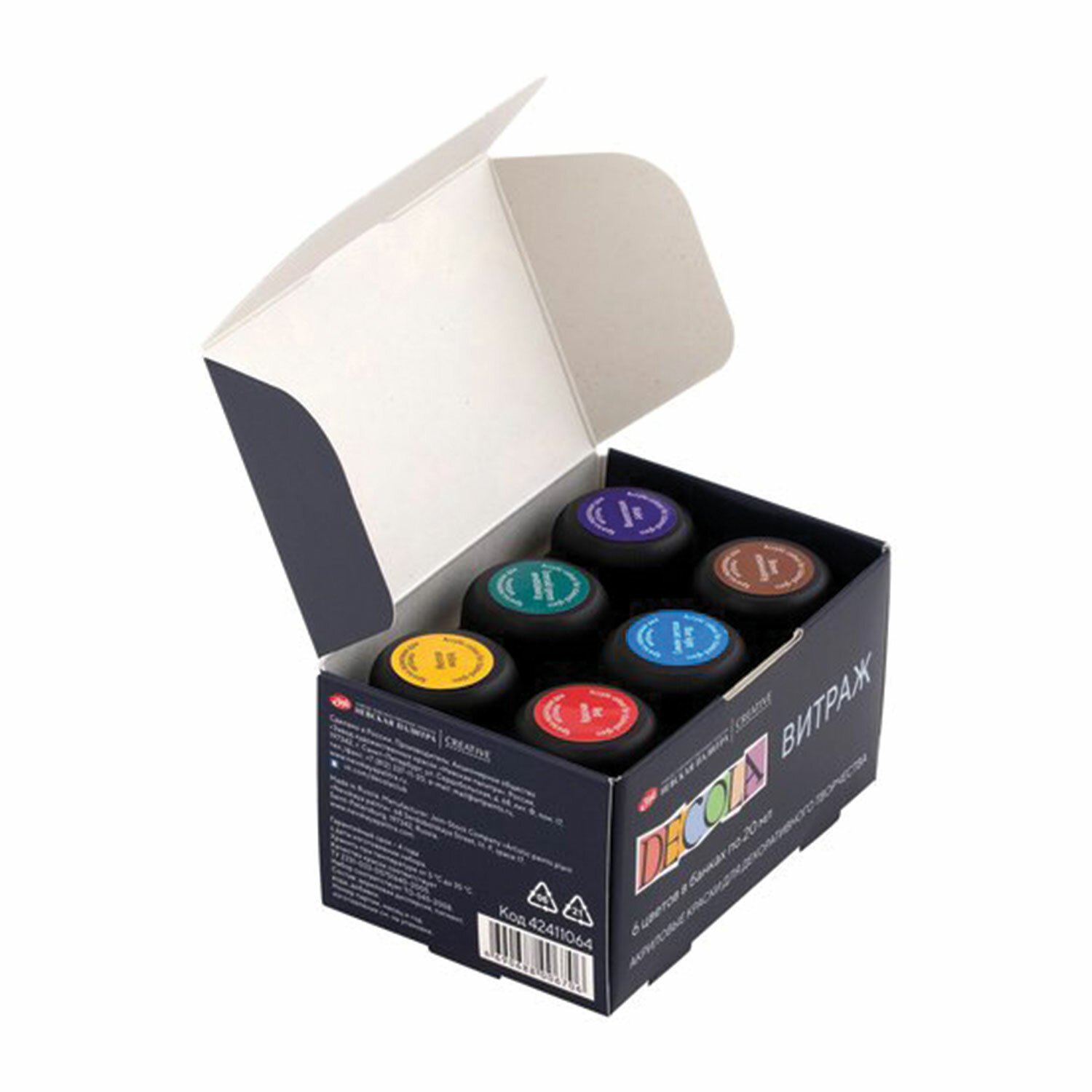Краски акриловые для витража "Декола", 6 цветов по 20 мл, в банках, 42411064