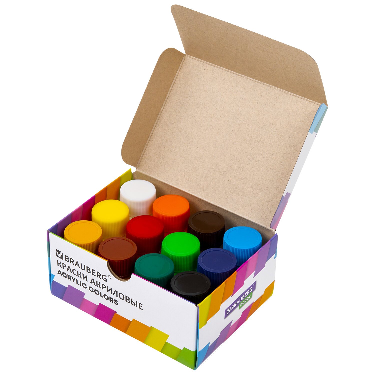 Краски акриловые художественные 12 цветов в банках по 22 мл, BRAUBERG HOBBY, 192410