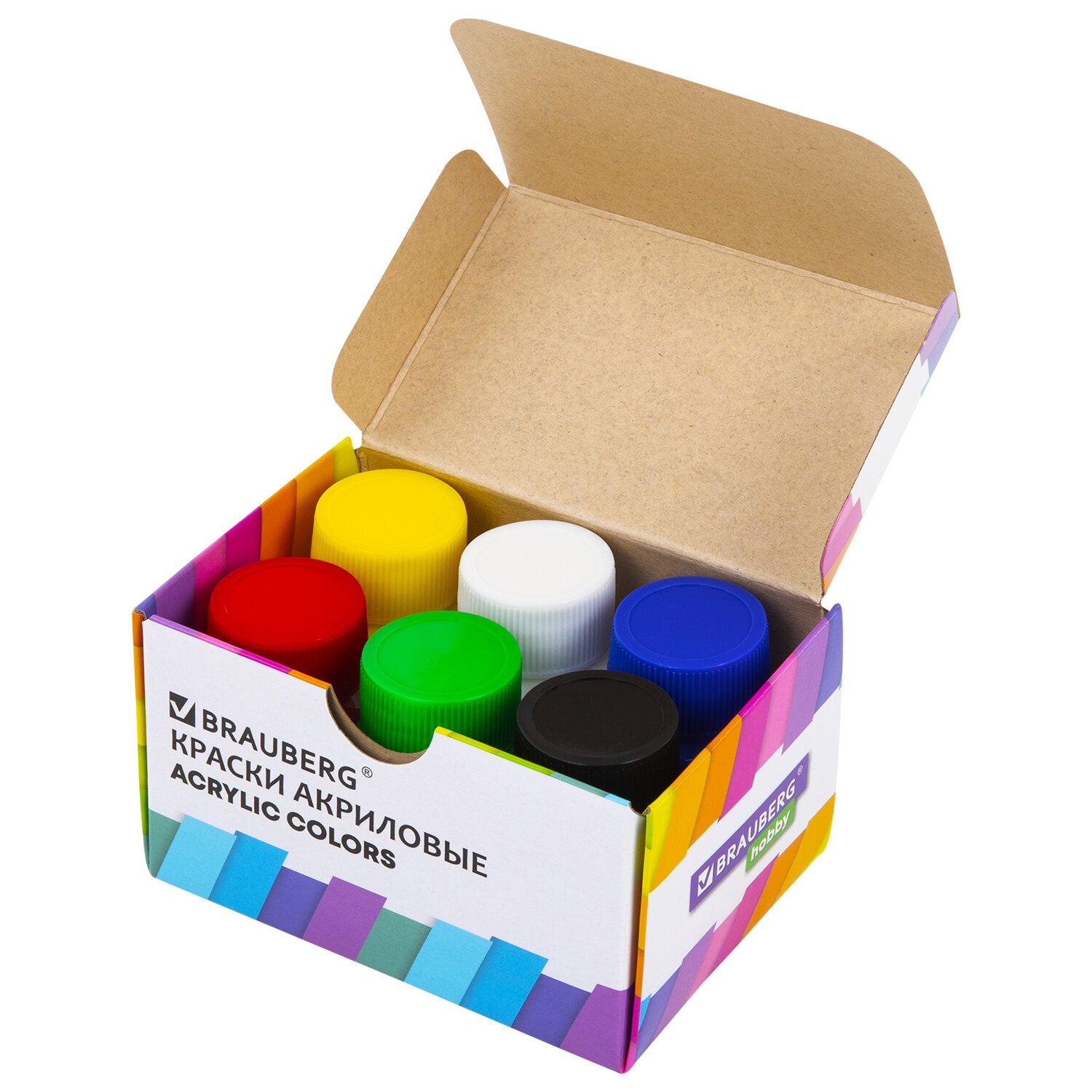 Краски акриловые для рисования и творчества 6 цветов по 20 мл, BRAUBERG HOBBY, 192434
