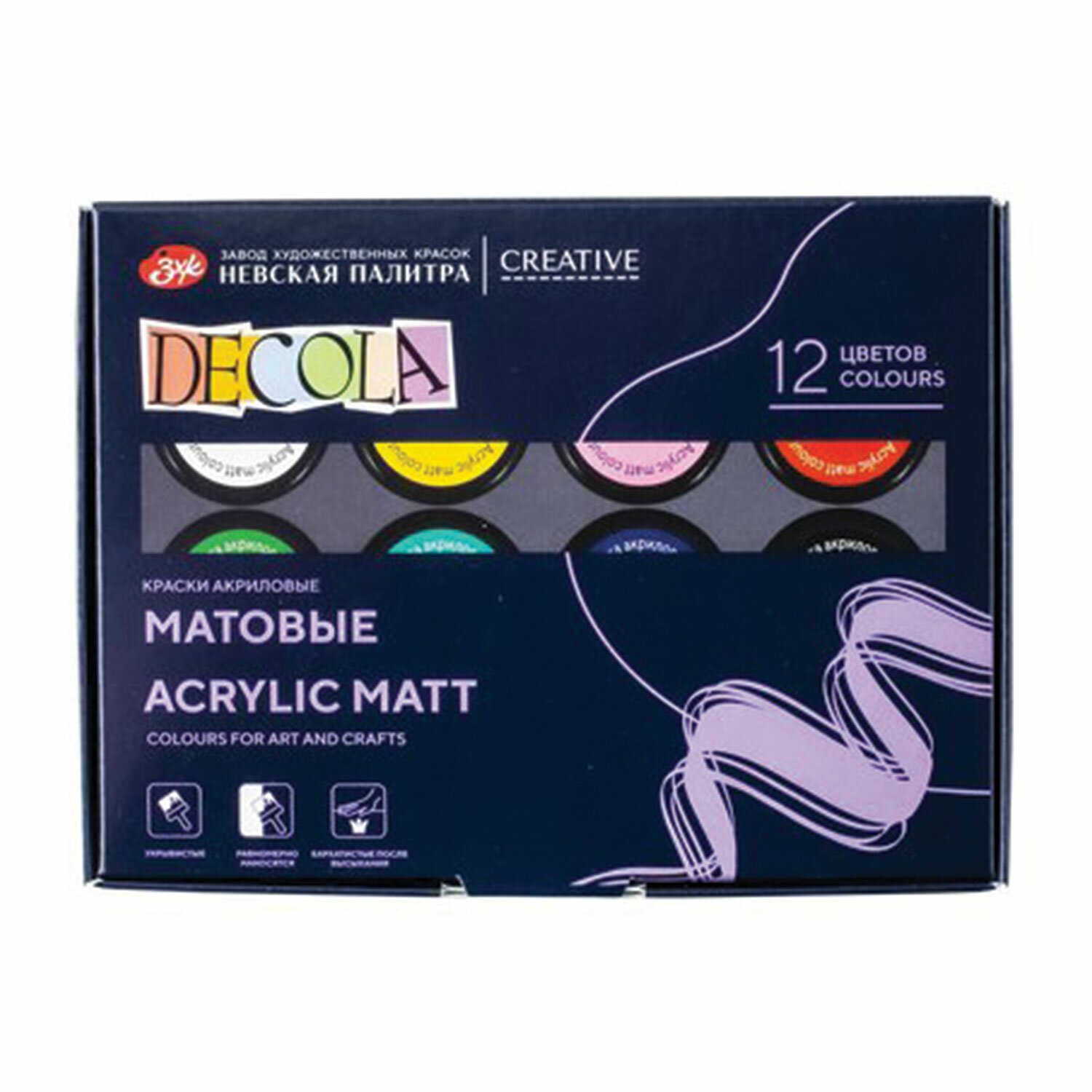 Матовые краски "Декола" на основе водной акриловой дисперсии легко наносятся на любую поверхность: бумагу, картон, грунтованный холст, дерево, металл, кожу и др.