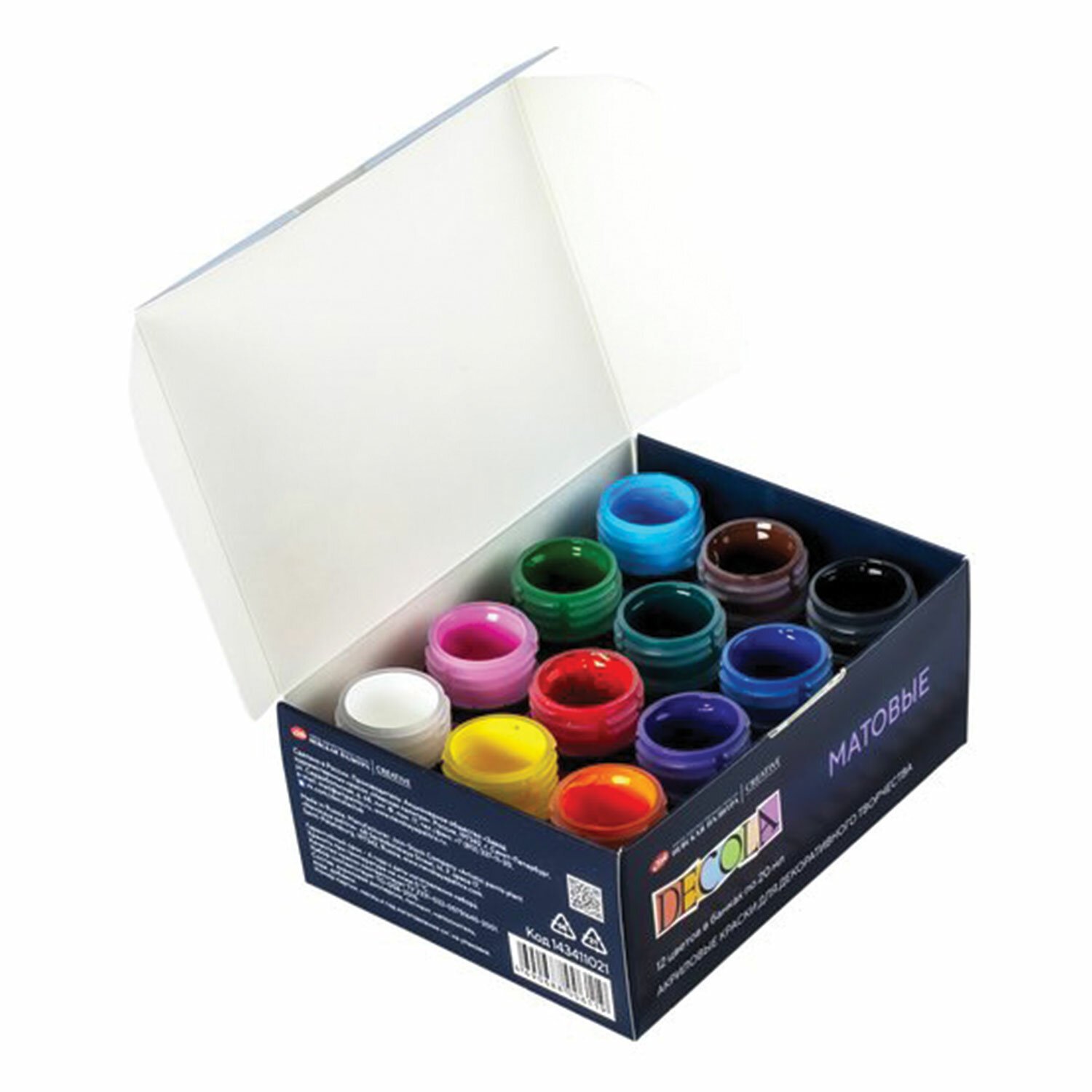 Краски акриловые матовые "Декола", 12 цветов по 20 мл, в банках, 143411021