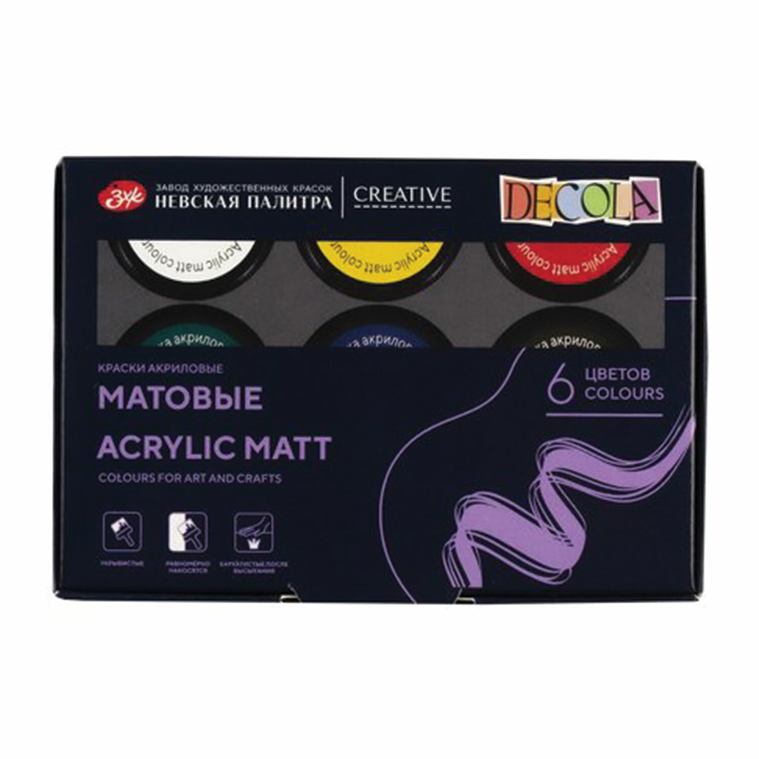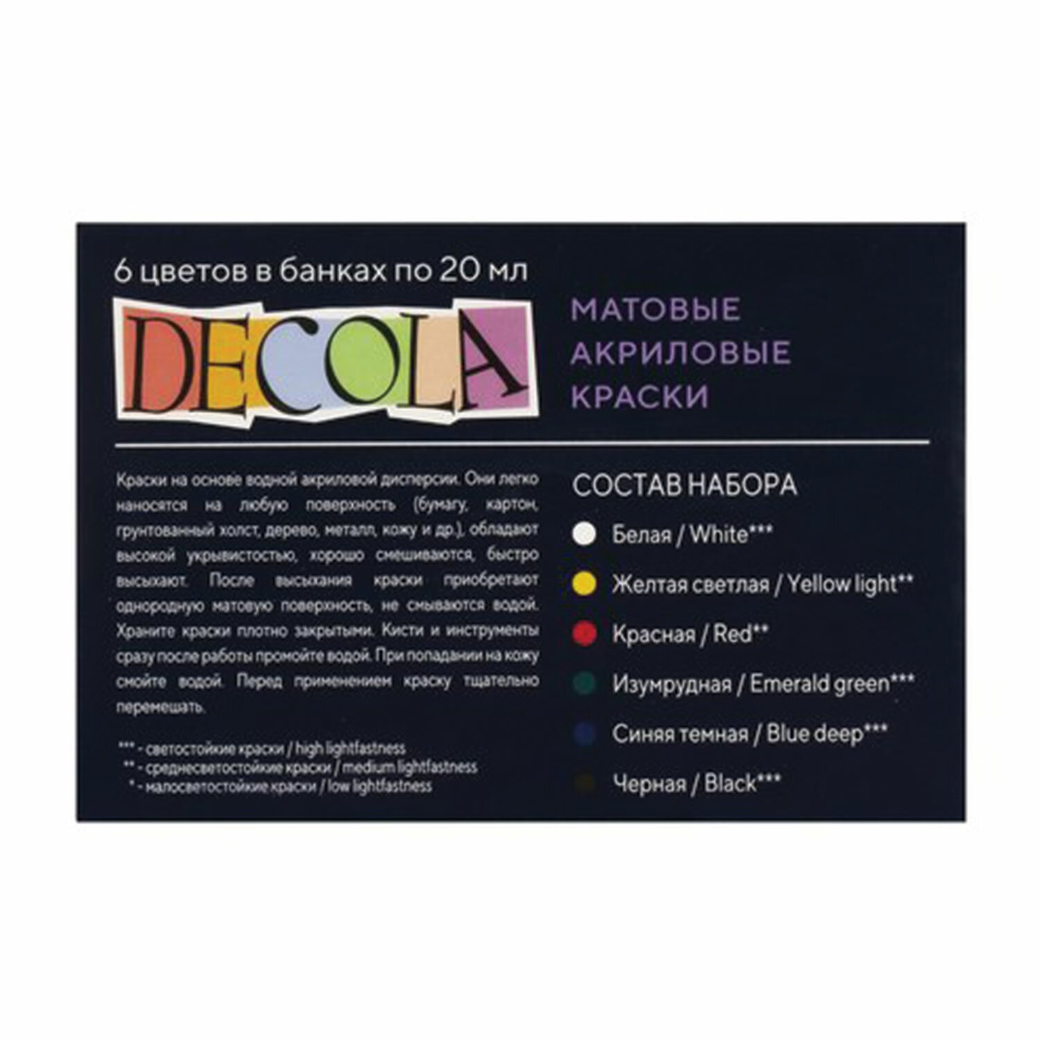 Краски акриловые матовые "Декола", 6 цветов по 20 мл, в банках, 143411020