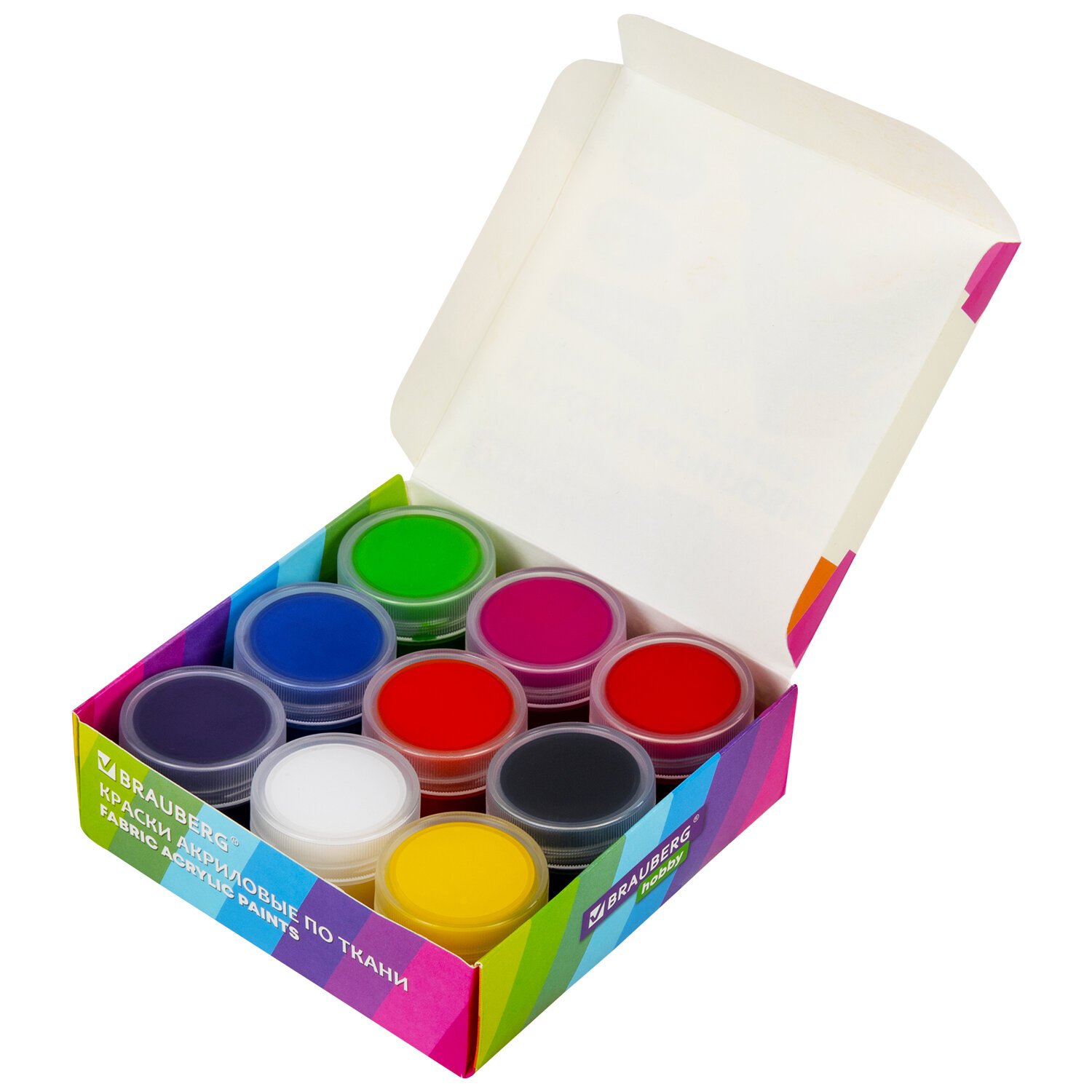 Краски акриловые по ткани 9 цветов по 10 мл, BRAUBERG HOBBY, 192442