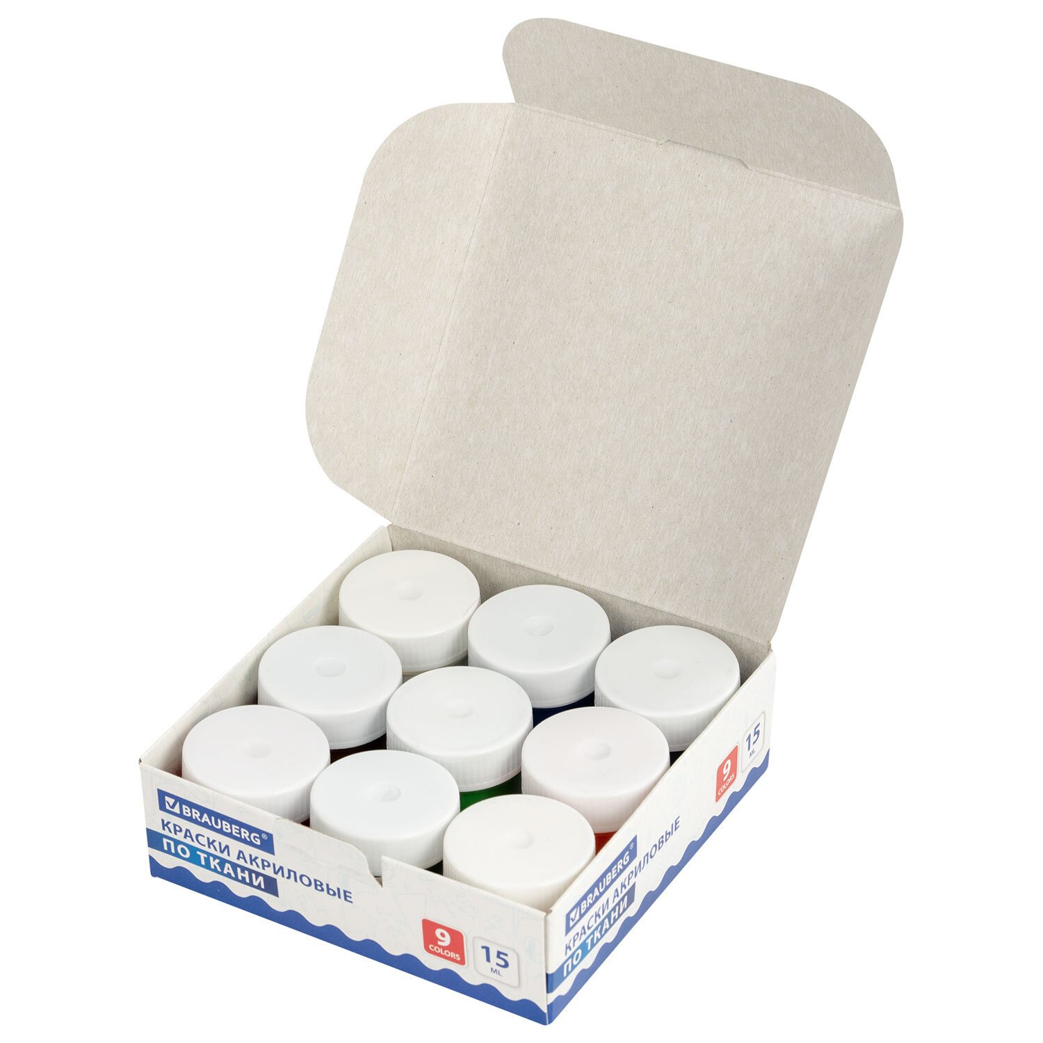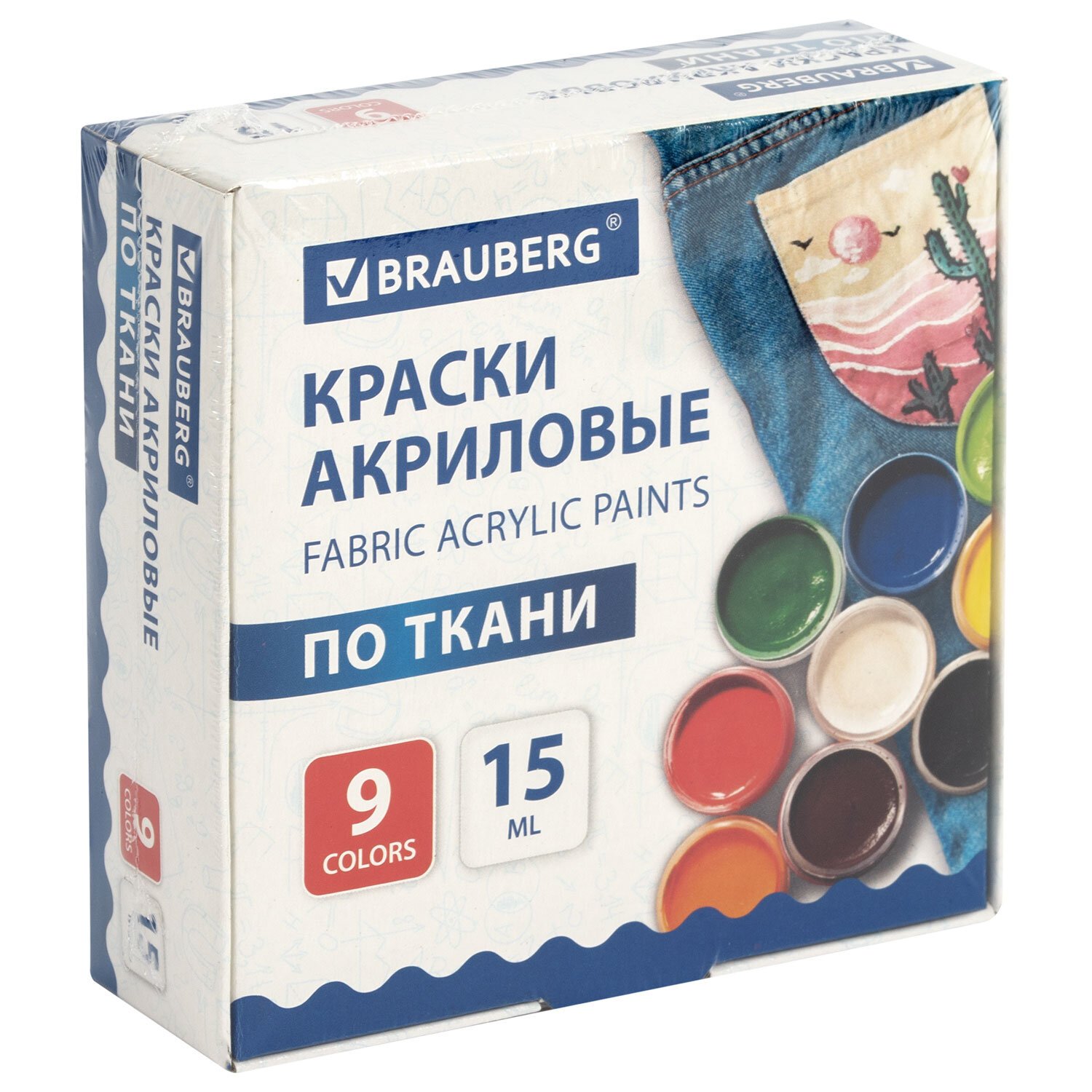 Краски акриловые по ткани 9 цветов по 15 мл, BRAUBERG, 192691