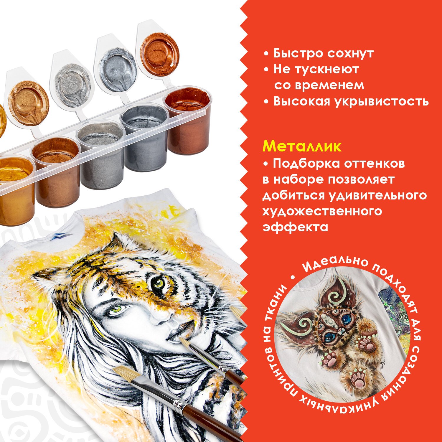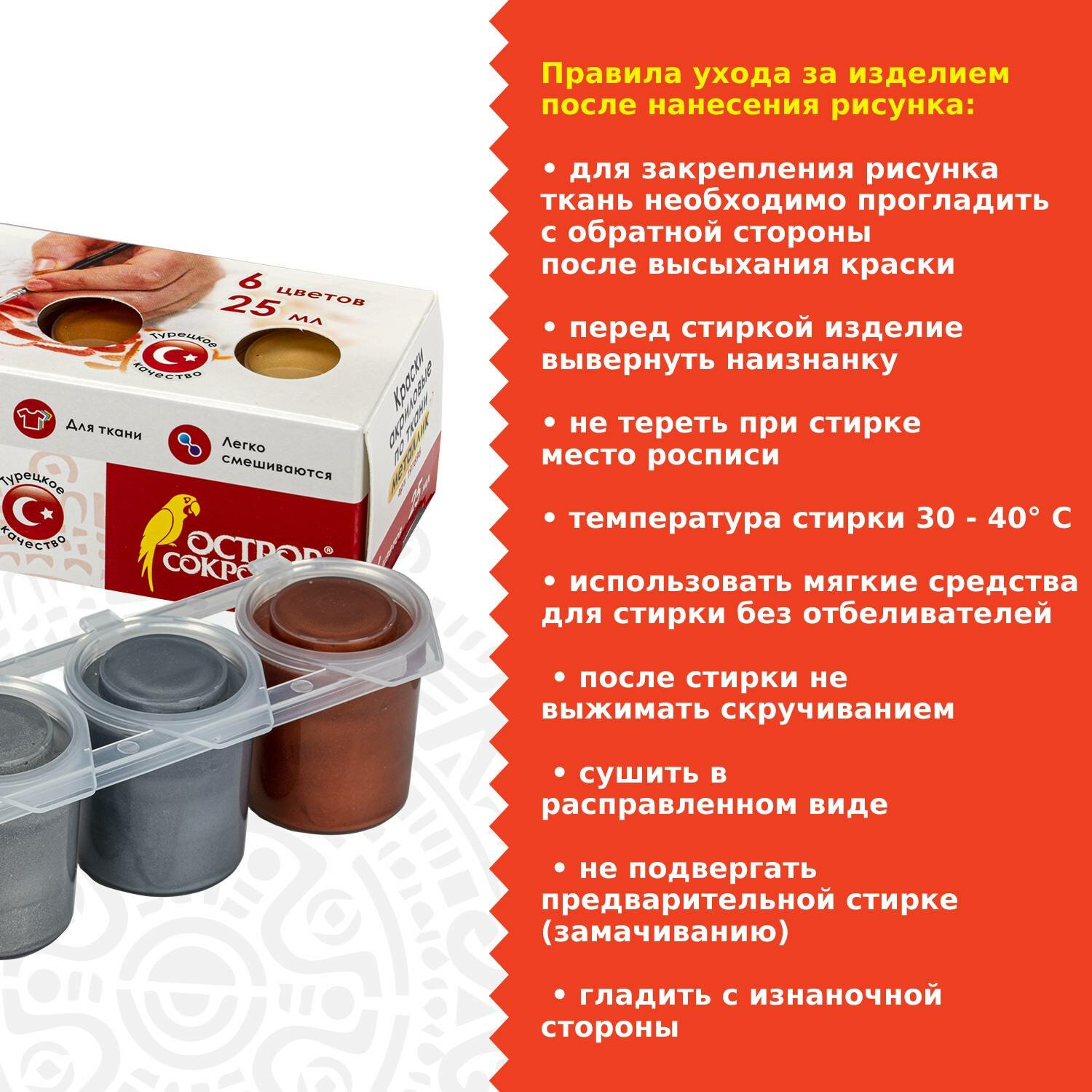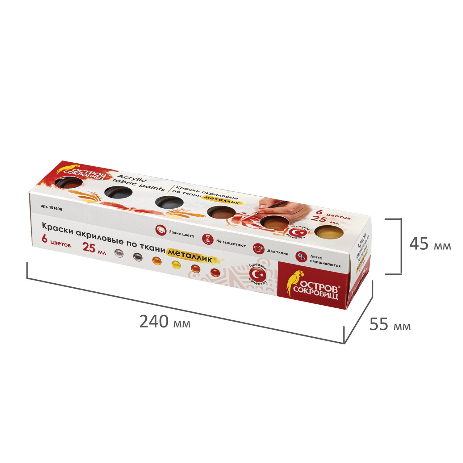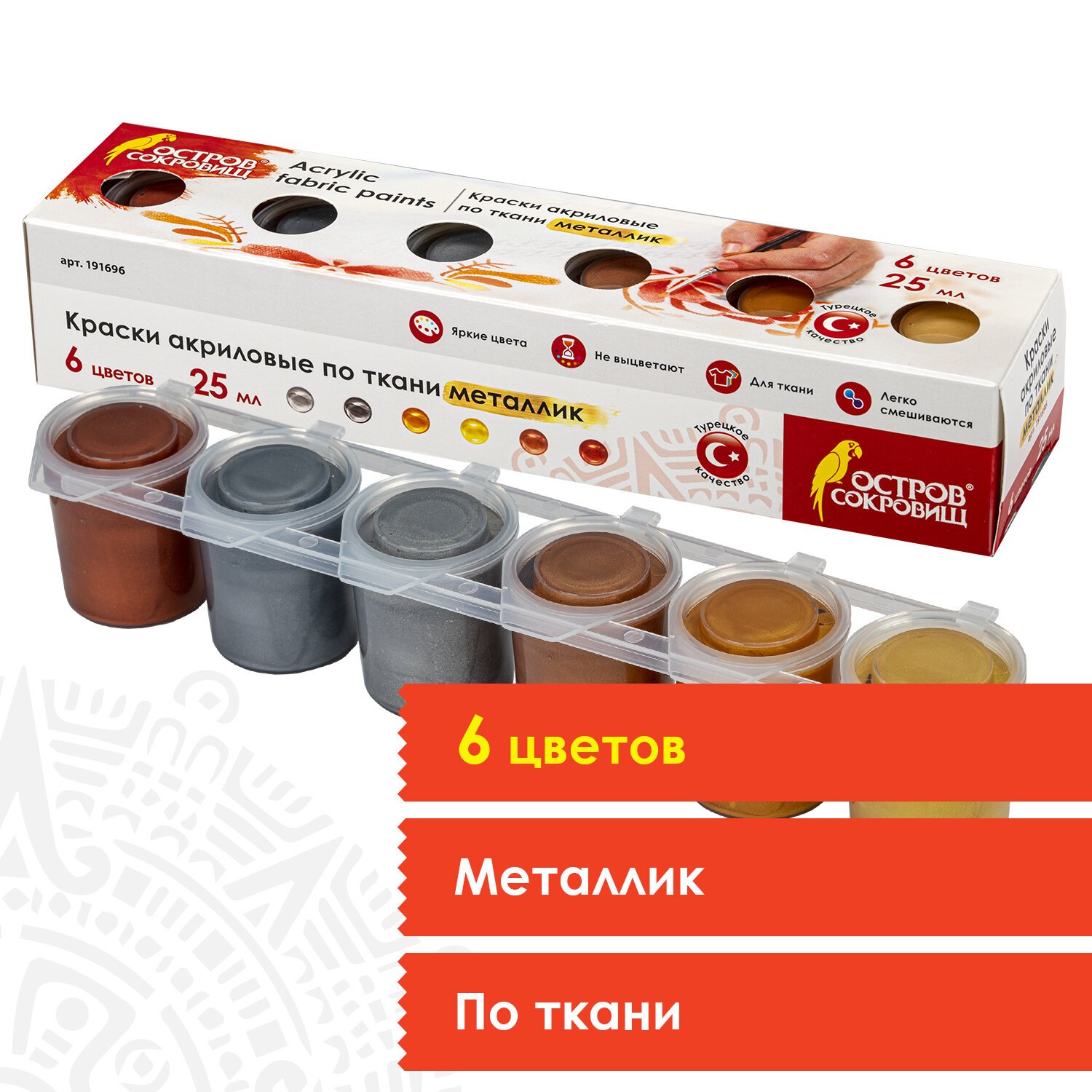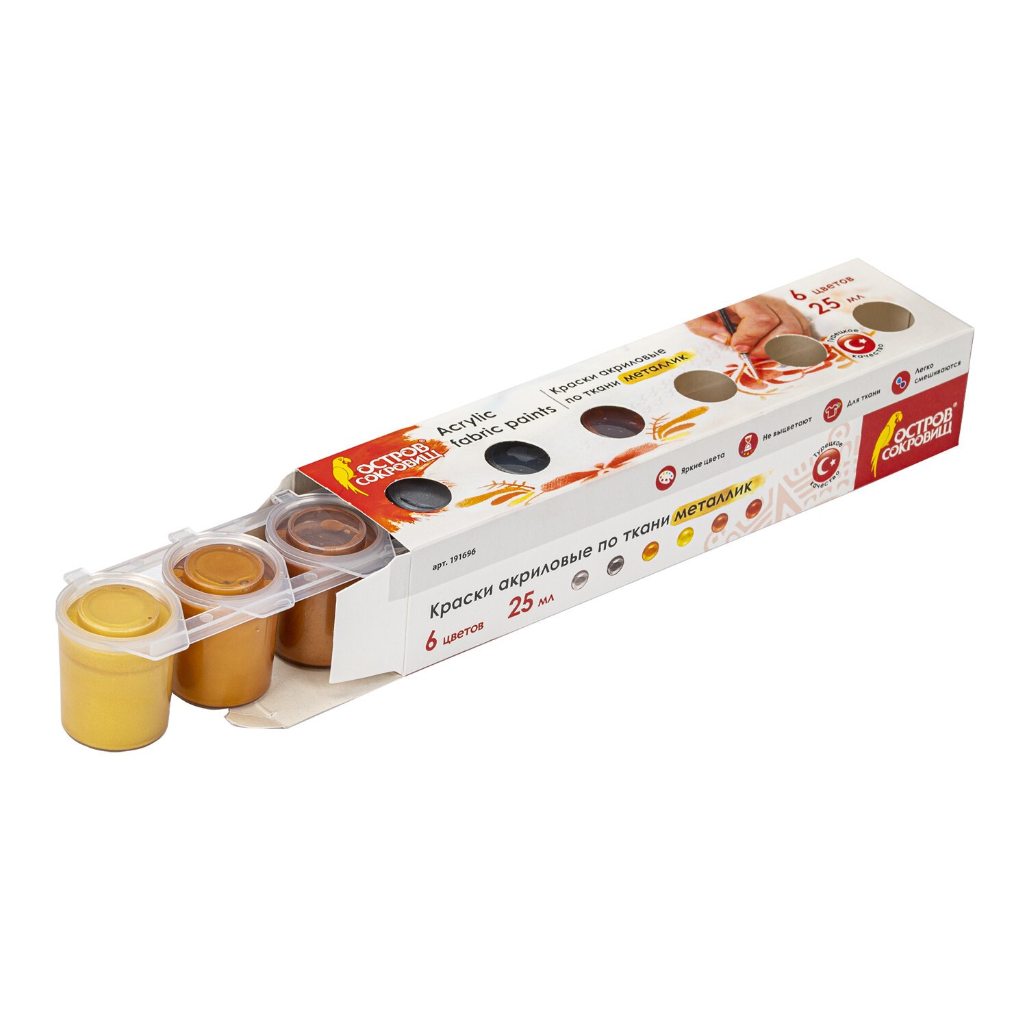 Краски акриловые по ткани МЕТАЛЛИК ОСТРОВ СОКРОВИЩ 6 цветов по 25 мл, 191696